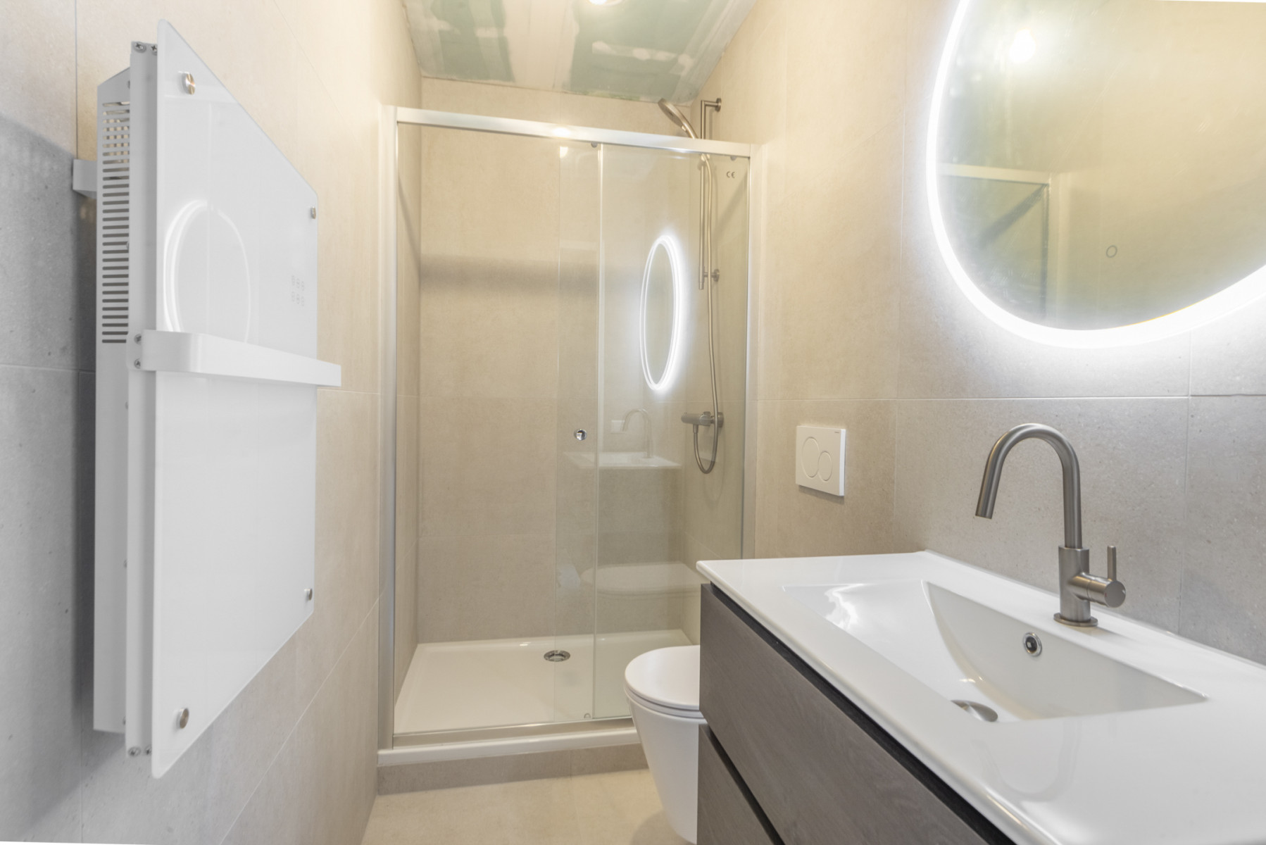 moderne badkamer. In de badkamer profiteert u van een douchecabine, een toilet, een wastafelmeubel met