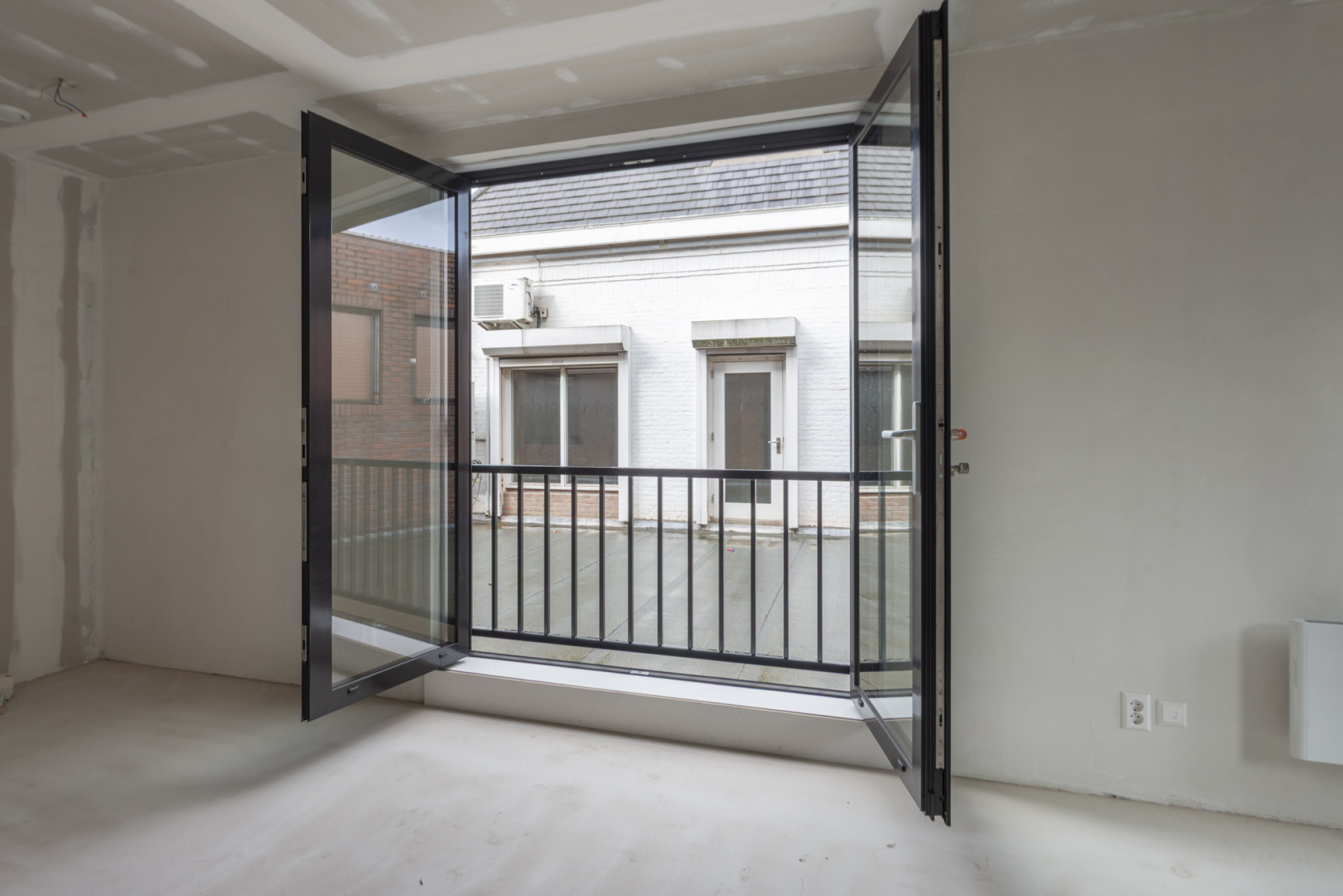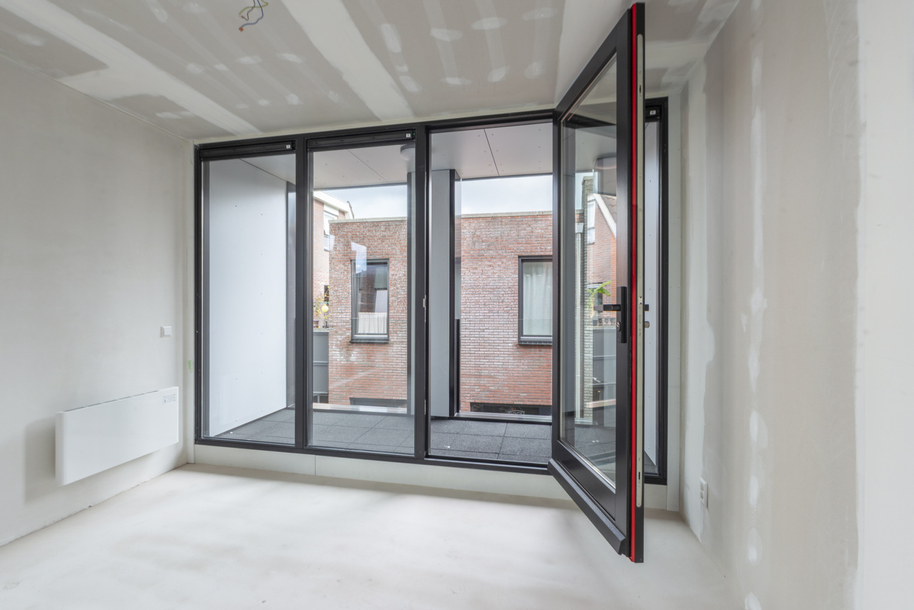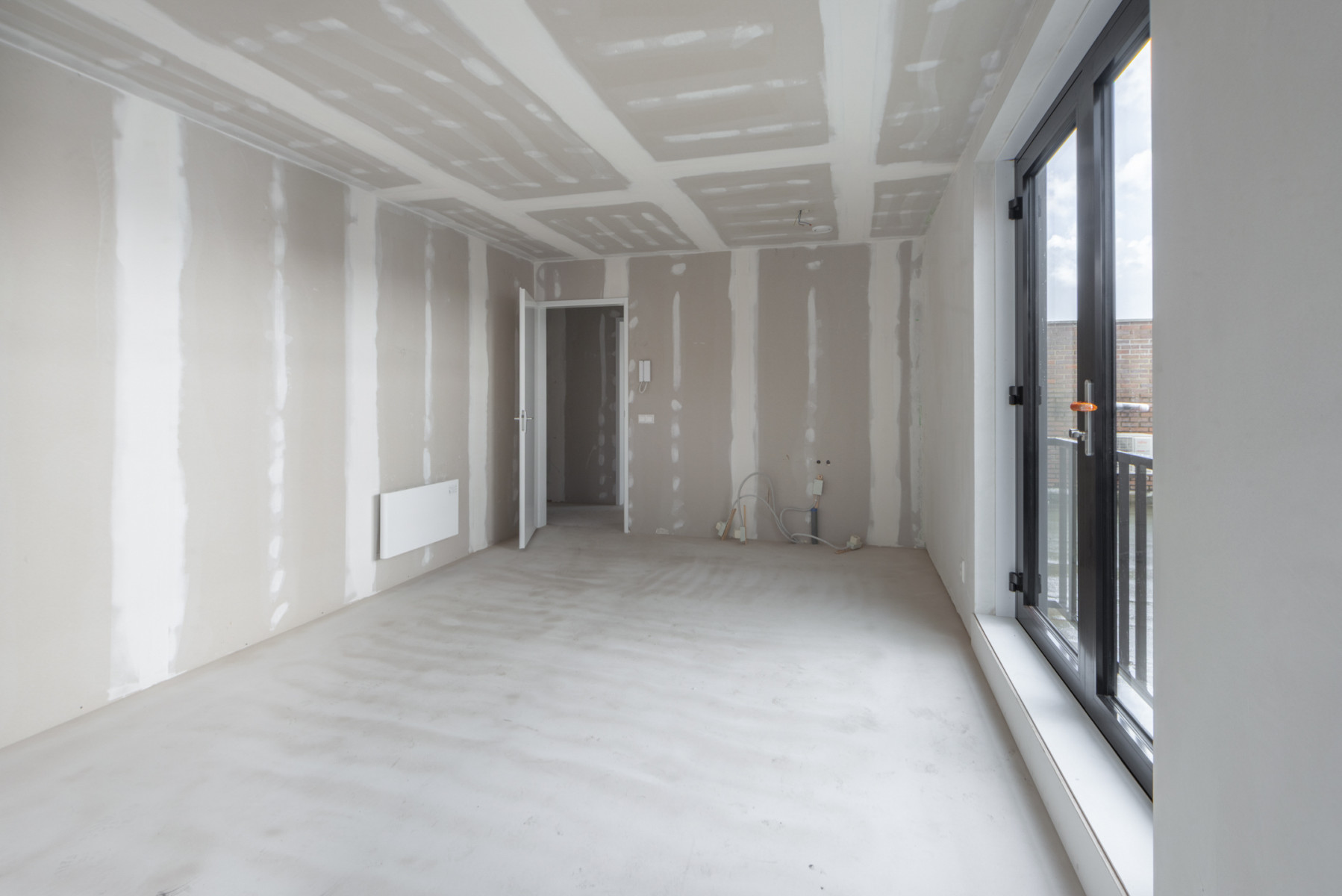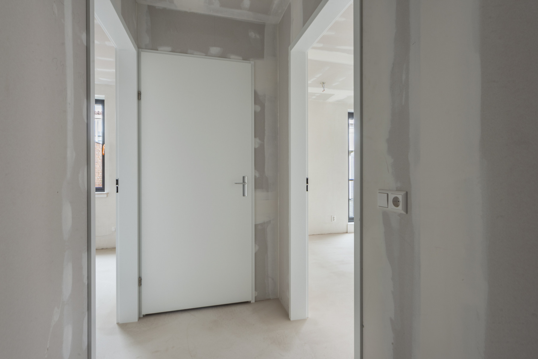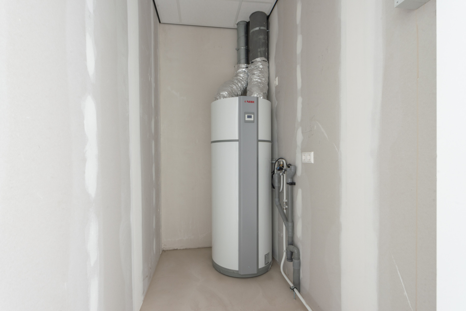 ventilatiewarmtepomp en de aansluiting voor de witgoedapparatuur. Het appartement is afgewerkt met een