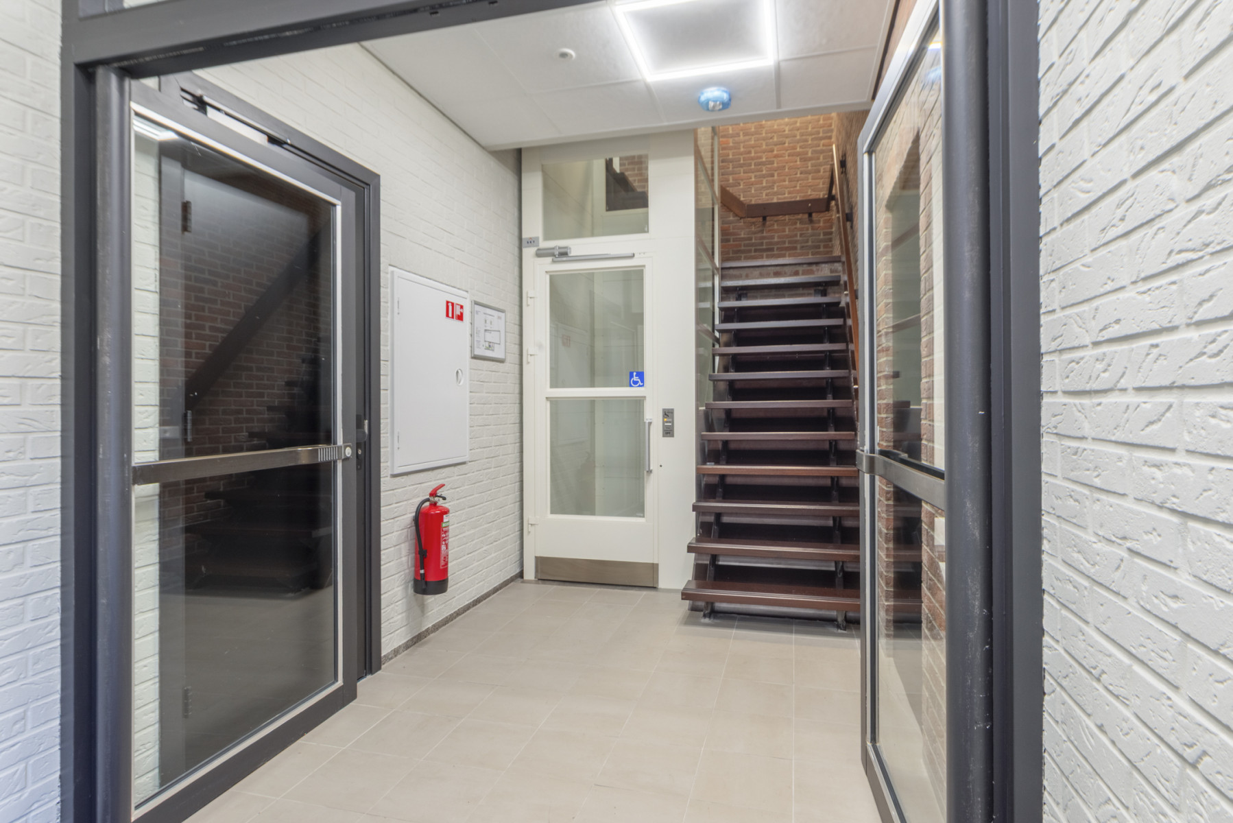In de centrale hal van het appartementencomplex bevindt zich de brievenbussen, de lifinstallatie en het trappenhuis. Op de begane grond bevindt zich ook een royale fietsenberging, hier kunnen alle bewoners hun fietsen plaatsen.