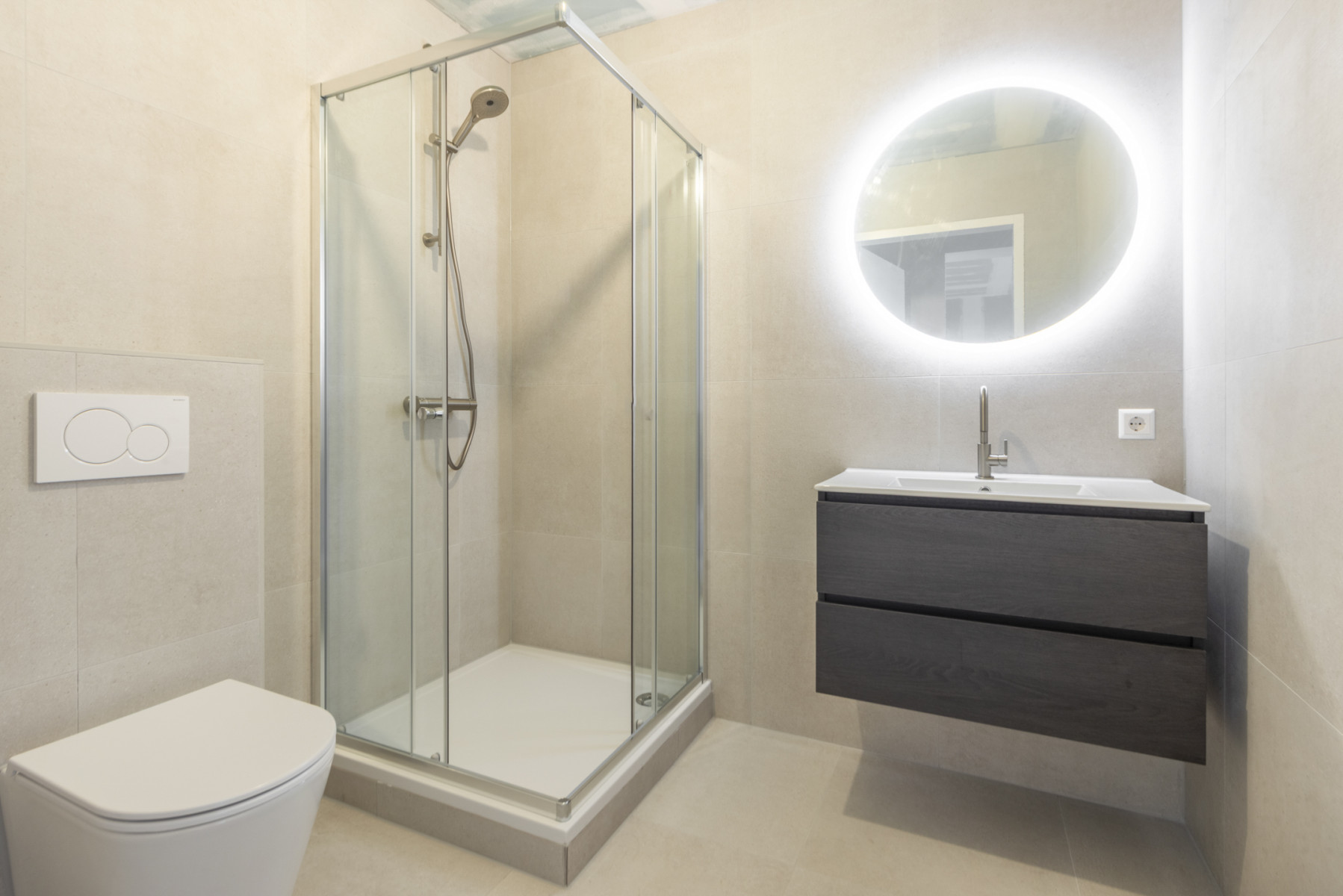 moderne badkamer. In de badkamer profiteert u van een douchecabine, een toilet, een wastafelmeubel met