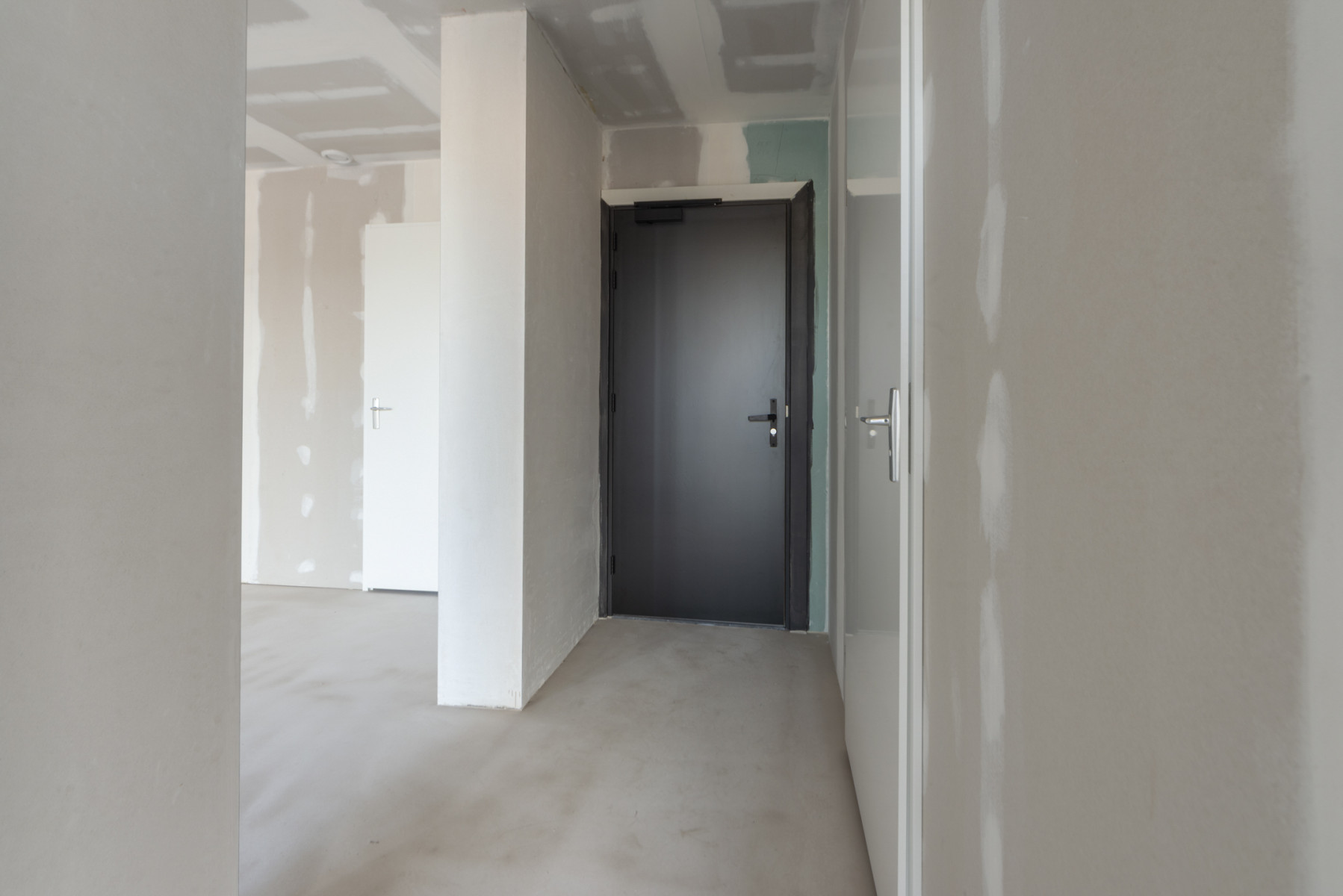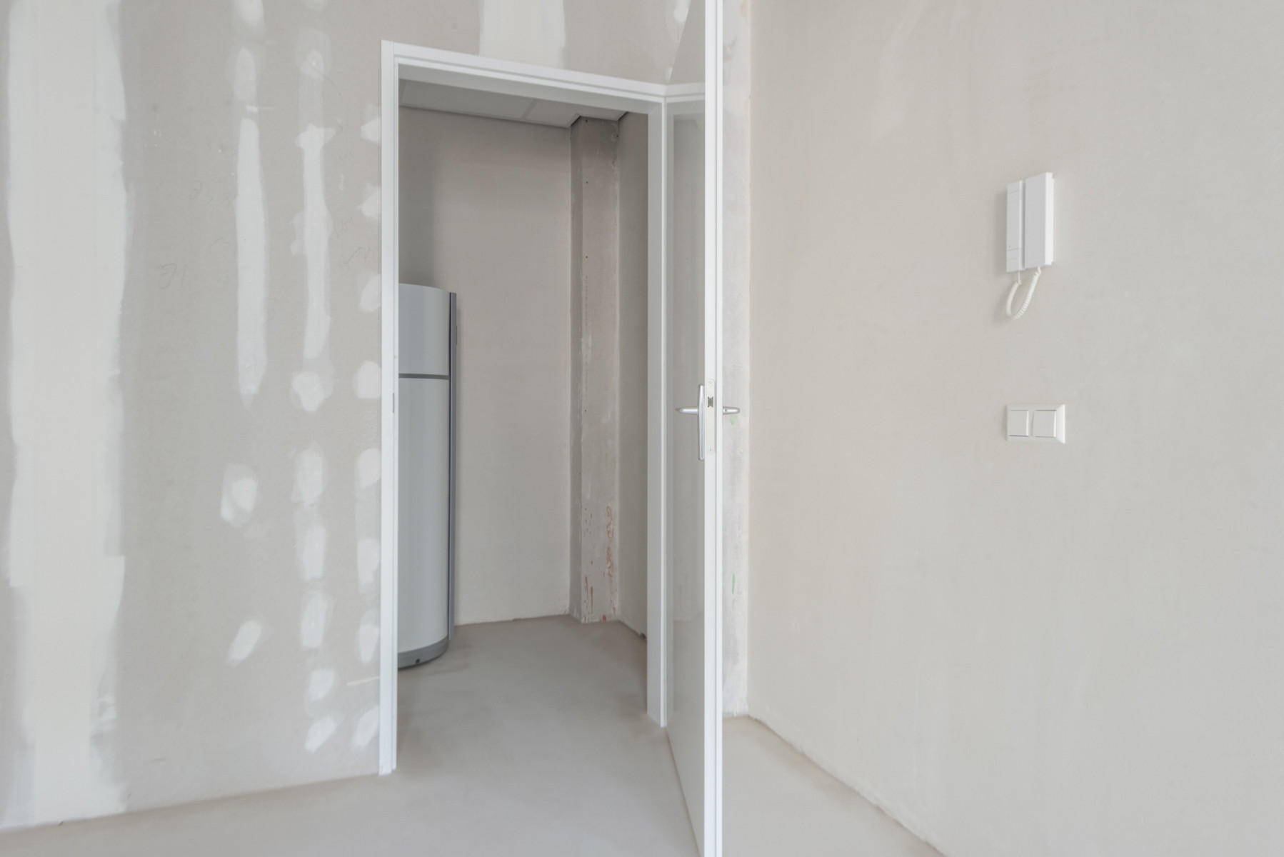 ventilatiewarmtepomp en de aansluiting voor de witgoedapparatuur. Het appartement is afgewerkt met een