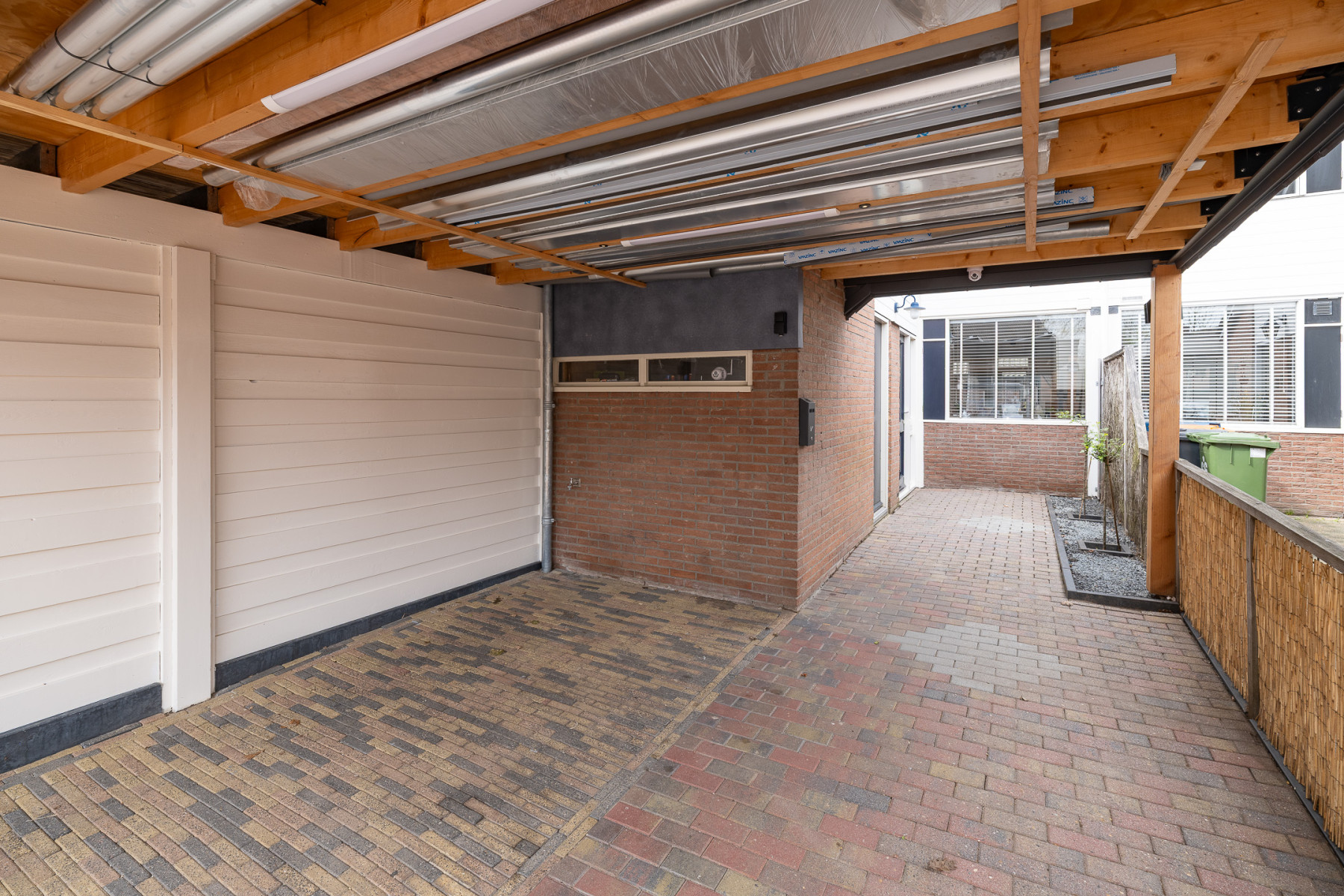 Bij deze woning profiteert u van een ruime achtertuin, maar ook van een ruime voortuin. De voortuin is voorzien van een carport waar u twee auto's kunt parkeren. Verder vindt u aan de voorzijde ook een stenen berging. Hierin kunnen de tuinspullen, het gereedschap en andere spullen opgeborgen worden.