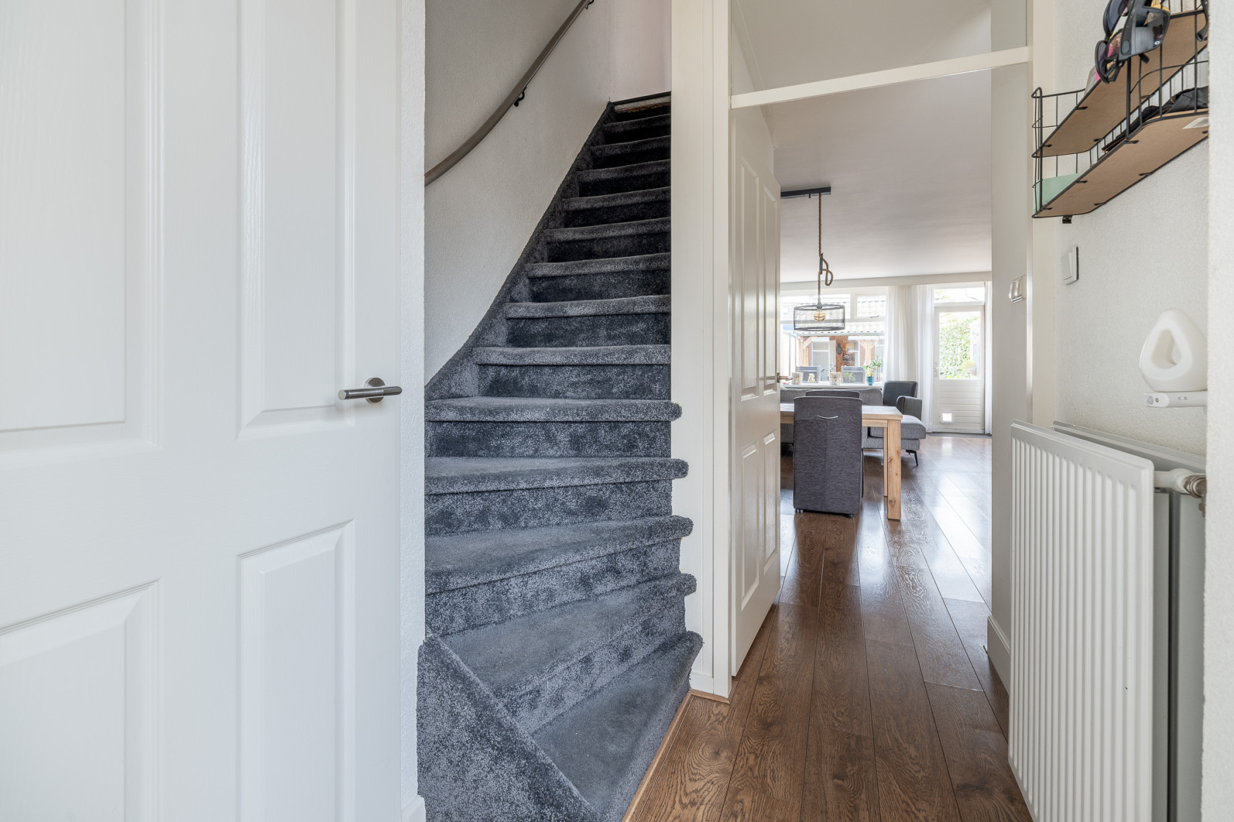 Welkom aan Slangenburg 68! U stapt binnen in een royale en lichte hal. In de hal bevindt zich een verzorgde toiletruimte met toilet en fonteintje, de meterkast en de trapopgang naar de eerste verdieping.