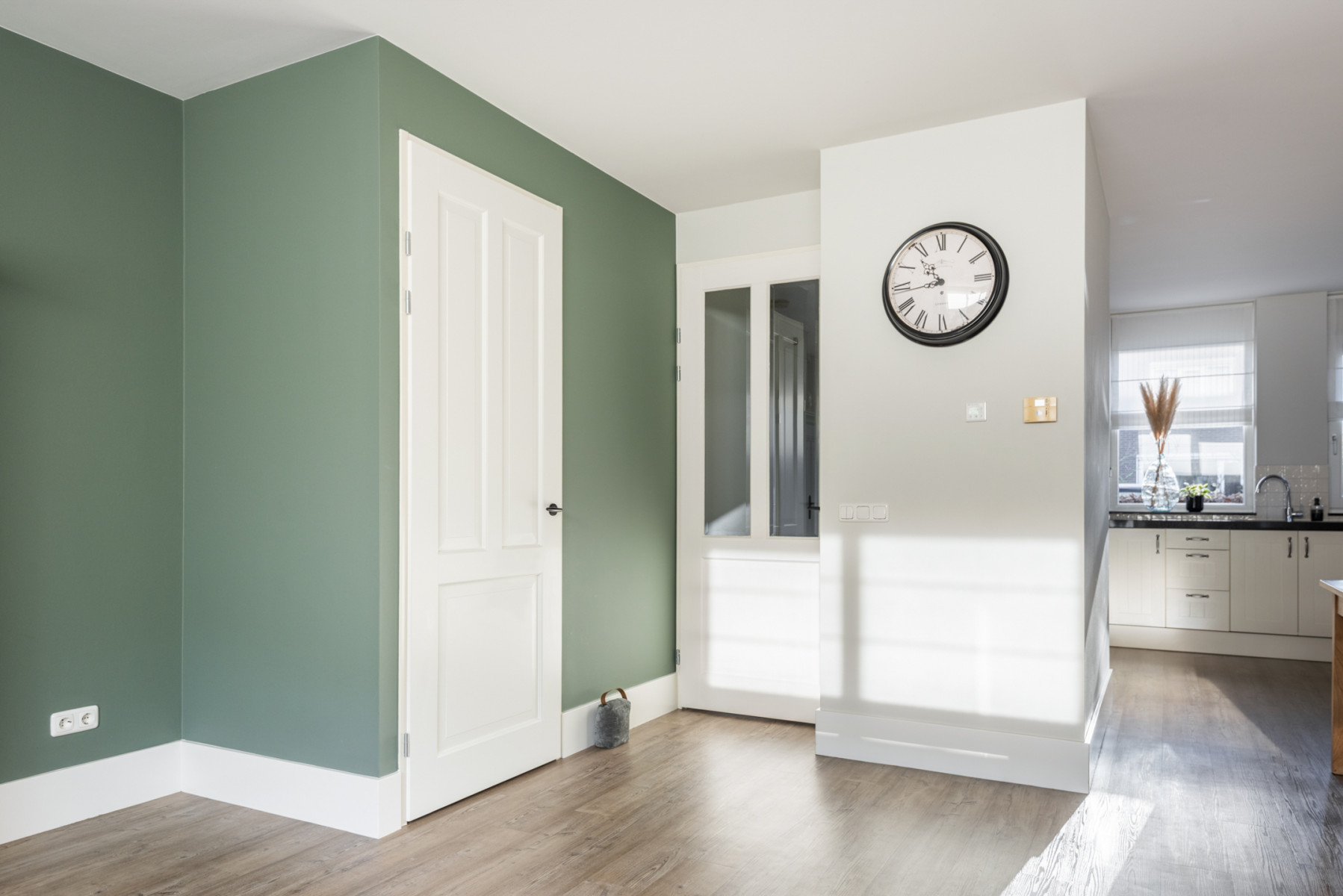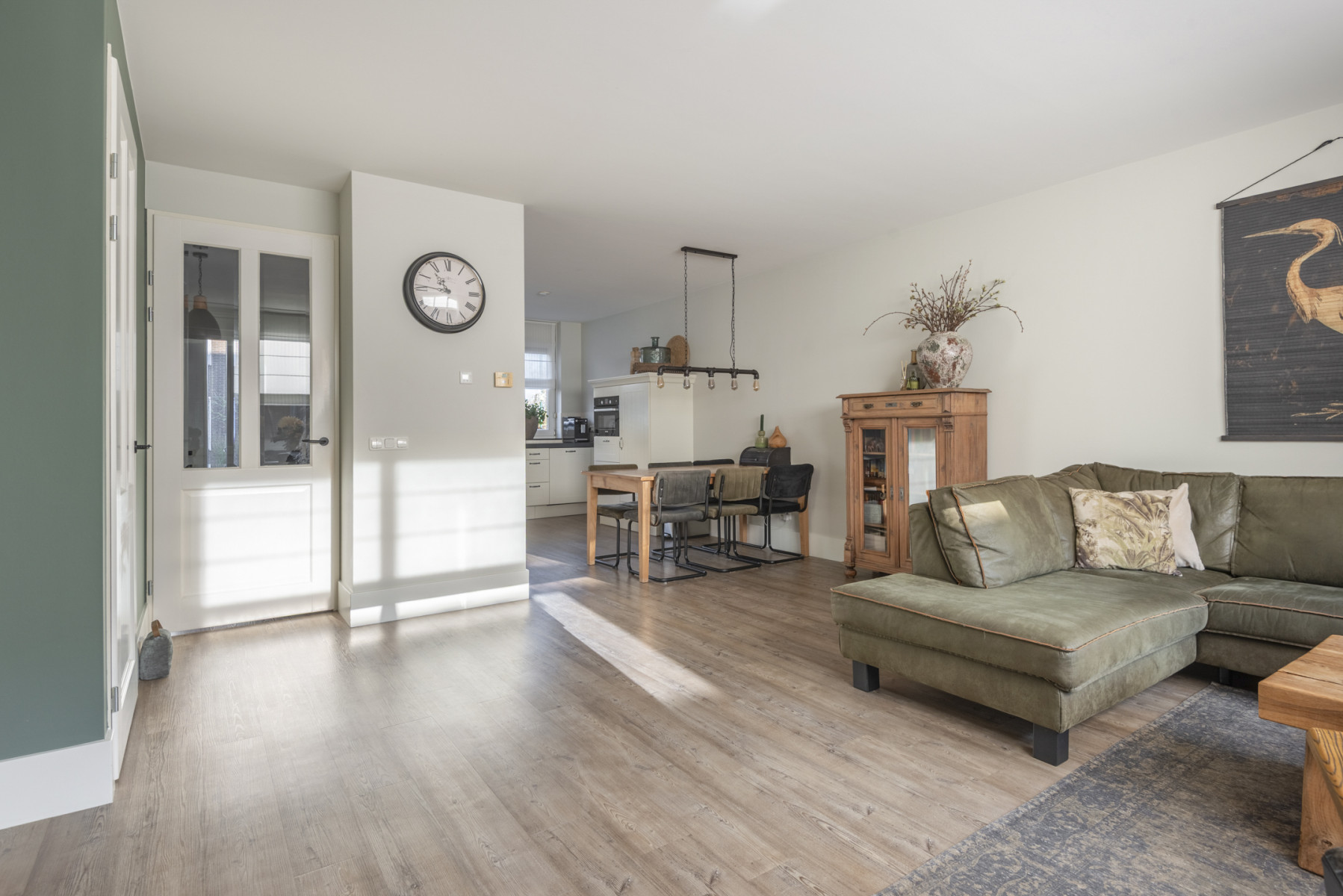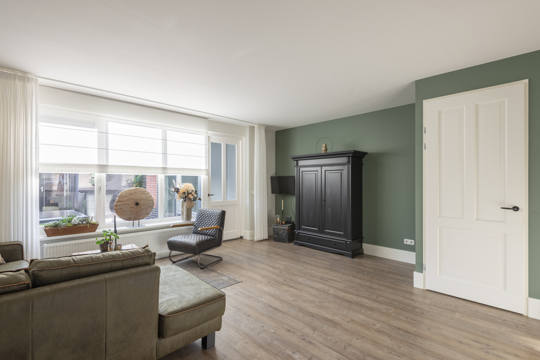 Deze instapklare woonkamer heeft een stijlvolle en moderne uitstraling. Het plafond is gestuukt, de wanden hebben een lichte kleurstelling én de vloer is voorzien van een mooie pvc-vloer. Deze woonkamer is helemaal klaar om direct in te betrekken en biedt een perfecte basis voor uw eigen interieurstijl. Een plek waar u zich meteen thuis zult voelen. Door het grote raampartij valt er veel daglicht naar binnen. Verder is de woonkamer voorzien van een praktische trapkast.