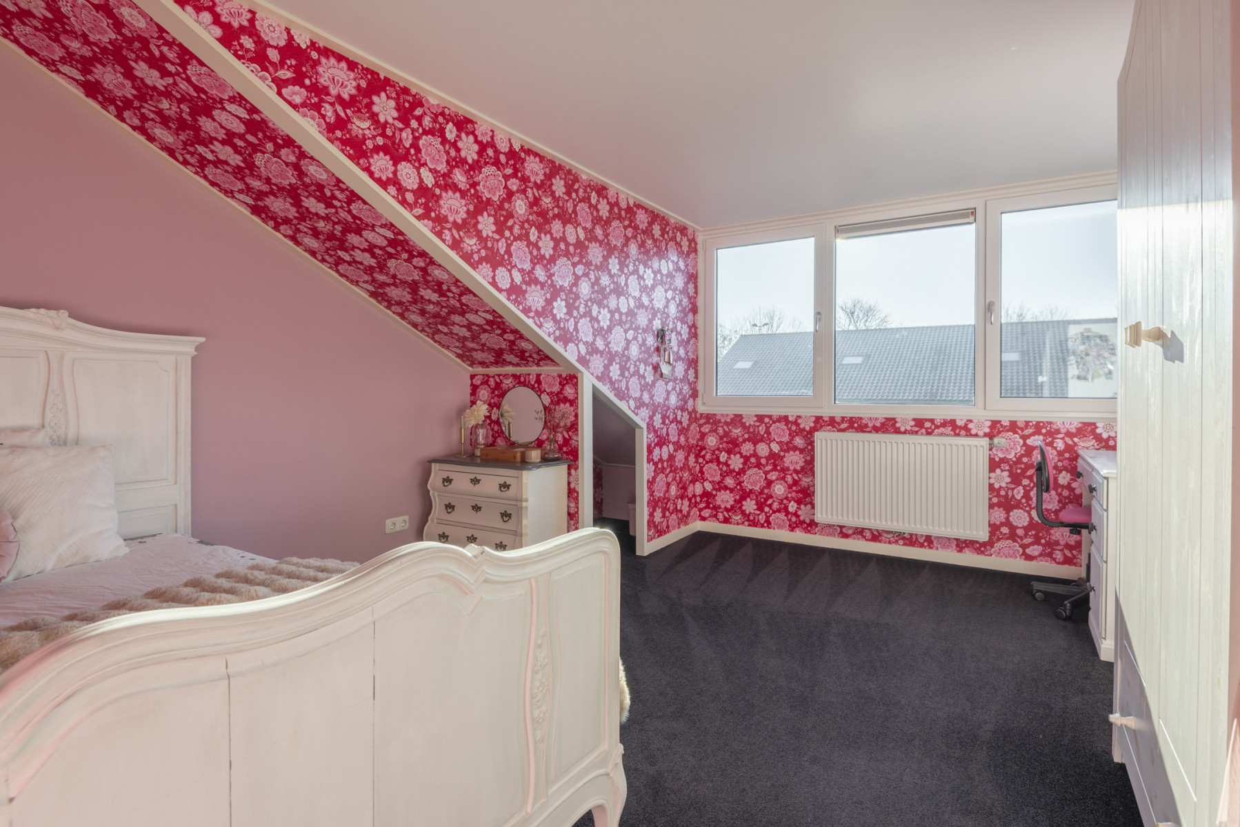 De woning biedt u veel ruimte, wat ook op de eerste verdieping terug te zien is. De overloop brengt u bij drie slaapkamers en de badkamer. Alle kamers hebben een nette afwerking en een royale maatvoering. Twee slaapkamers zijn voorzien van een elektrisch bedienbaar rolluik. De ouderslaapkamer beschikt over een vaste kastenwand.