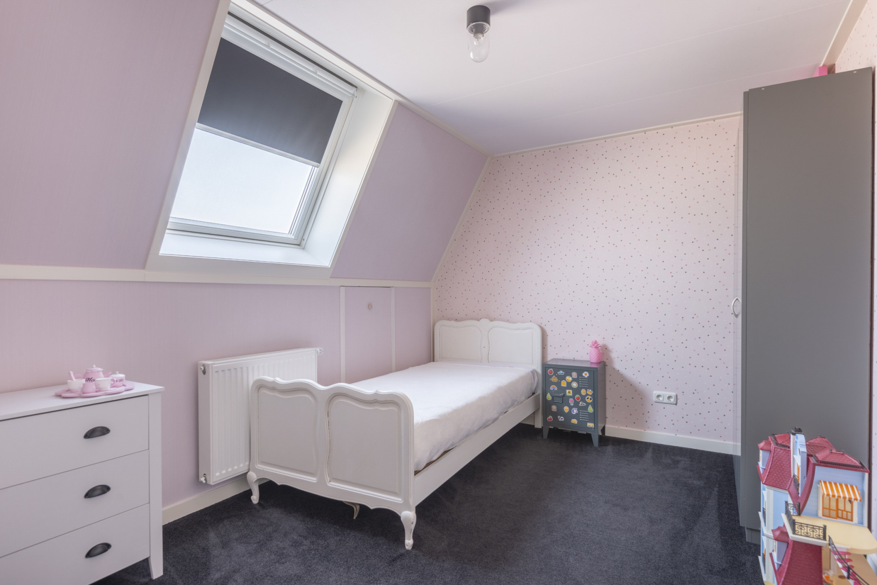 De tweede verdieping is verrassend ruim en praktisch ingedeeld. Op de overloop treft u de aansluiting voor de witgoedapparatuur, opstelling van de cv-ketel en een opbergruimte voor bijvoorbeeld seizoensgebonden spullen. Vanuit de overloop bereiken we twee ruime slaapkamers. Beide kamers zijn netjes afgewerkt. Eén kamer beschikt over bergruimte achter knieschot en een Velux dakraam. De andere kamer is voorzien van een dakkapel en een elektrisch bedienbaar rolluik. Boven de verdieping vindt u nog een bergzolder die middels een vlizotrap te bereiken is. Dankzij de airconditioning in het trappegat is het hier qua temperatuur altijd aangenaam.