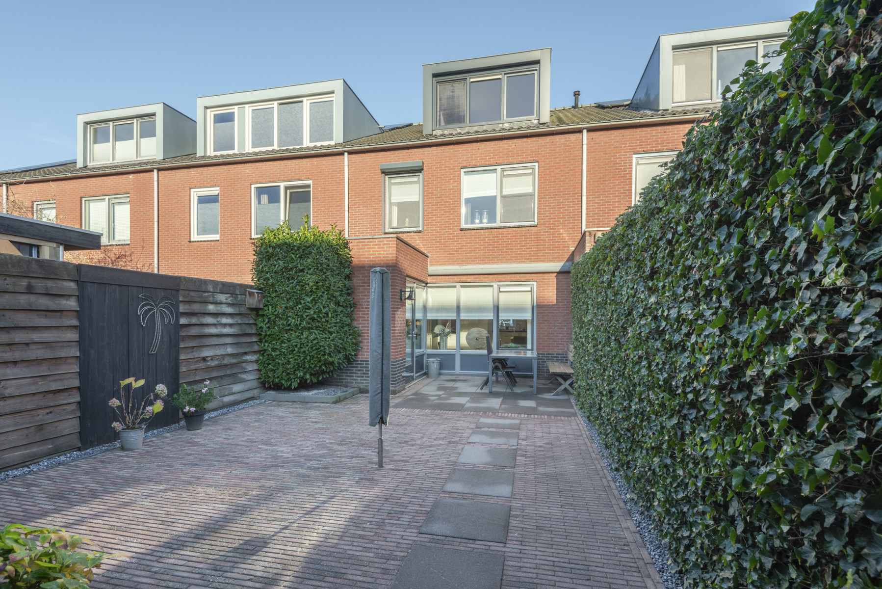 Zodra u vanuit de bijkeuken de tuin in stapt, staat u in een tuin waar u direct kunt genieten van het buitenleven. Hij is strak en netjes aangelegd met veel bestrating en aan de zijkant diverse groen. Zet uw loungeset neer en geniet van het buitenzijn. De tuin heeft een perfecte ligging op het zuidoosten, waardoor u veel van de zon profiteert. Liever in de schaduw zitten? Door het elektrisch bedienbare uitvalscherm is dat ook mogelijk.