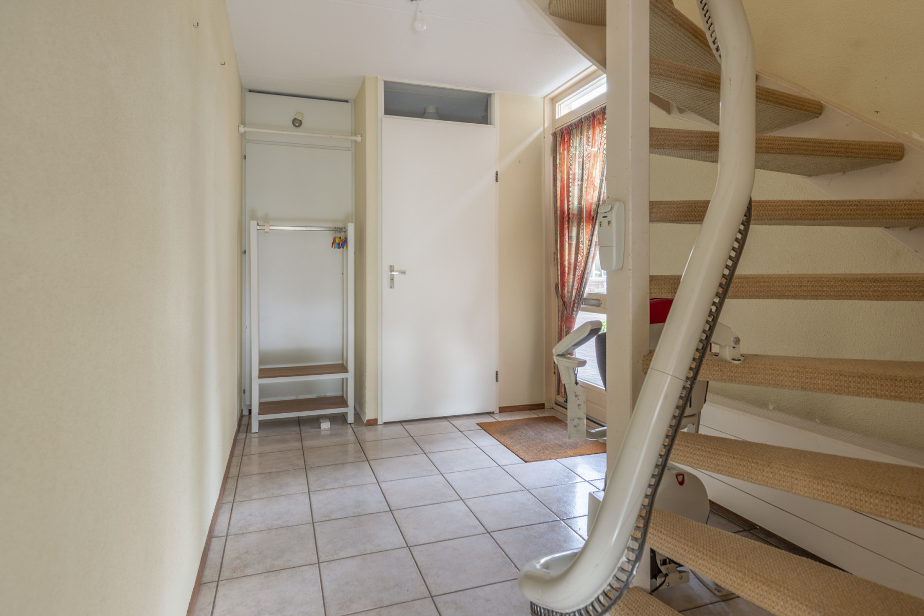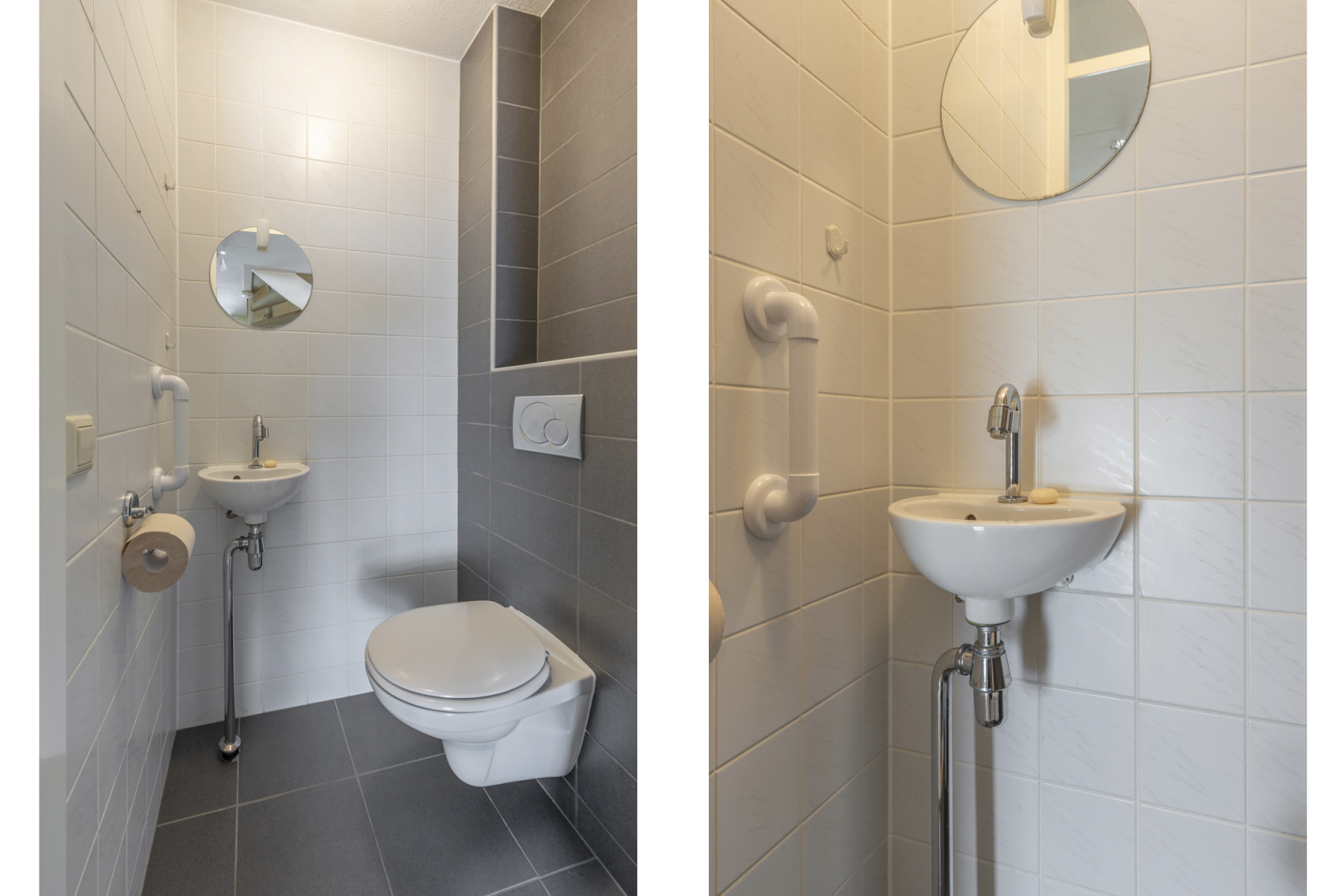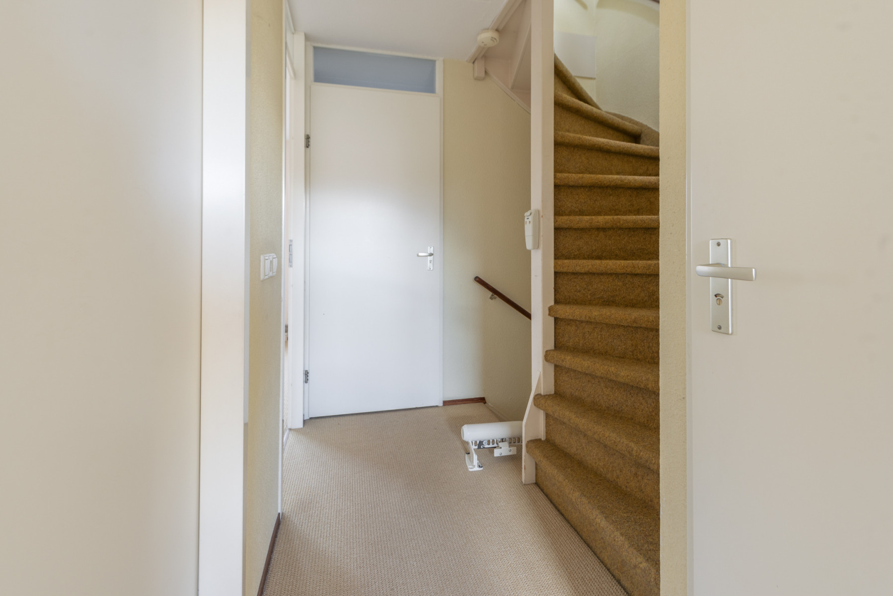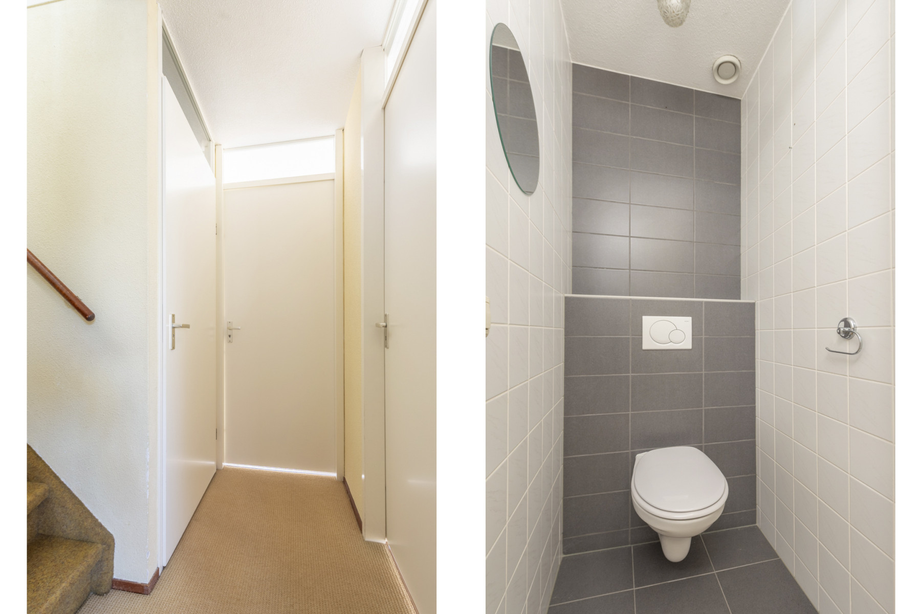 De woning komen we binnen in de hal. Aan de rechterzijde treft u een toiletruimte met toilet en fonteintje, vervolgens de meterkast en aan de andere kant vinden we de trapopgang naar de eerste verdieping.