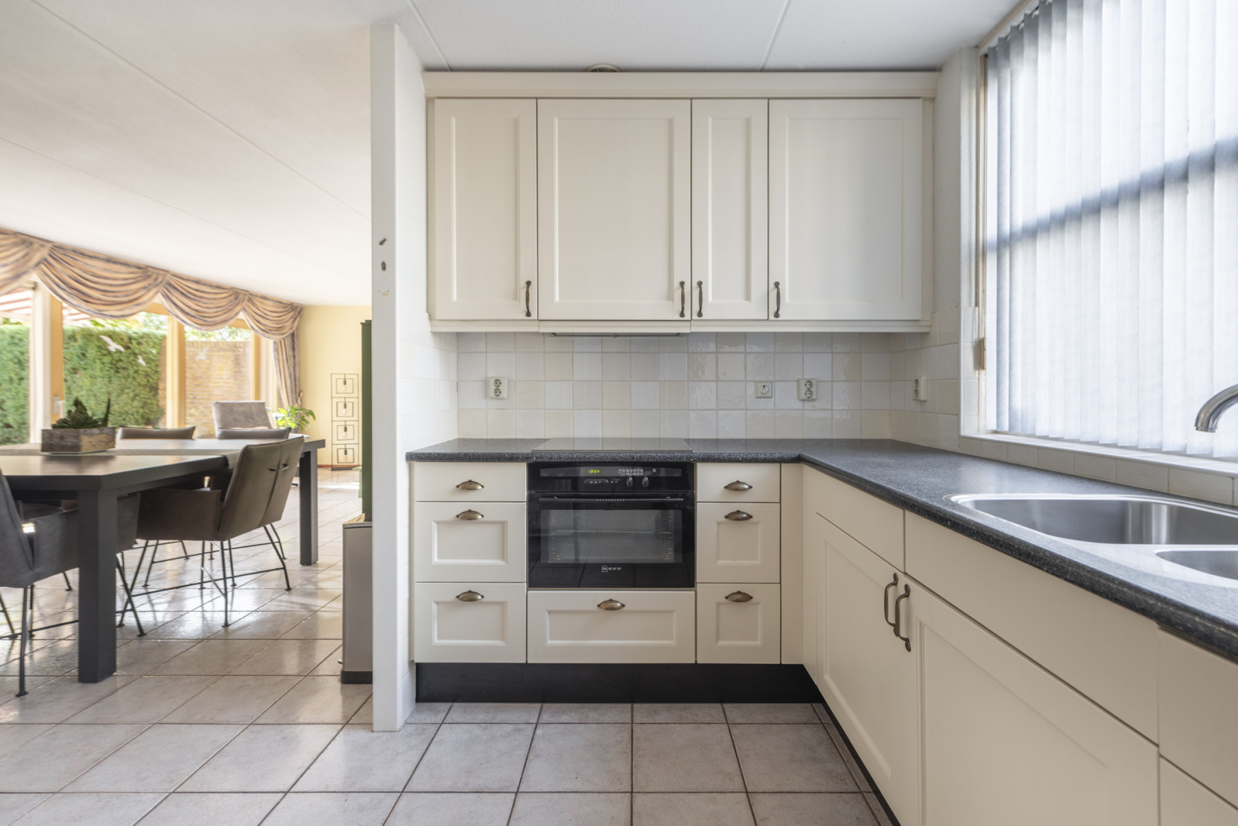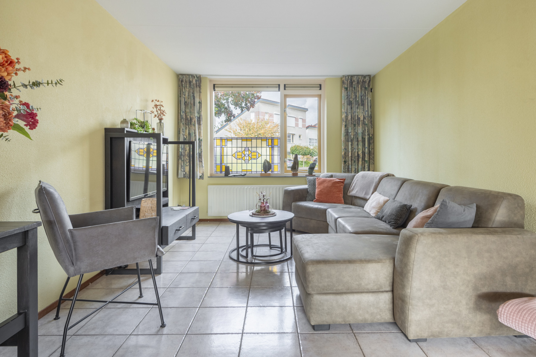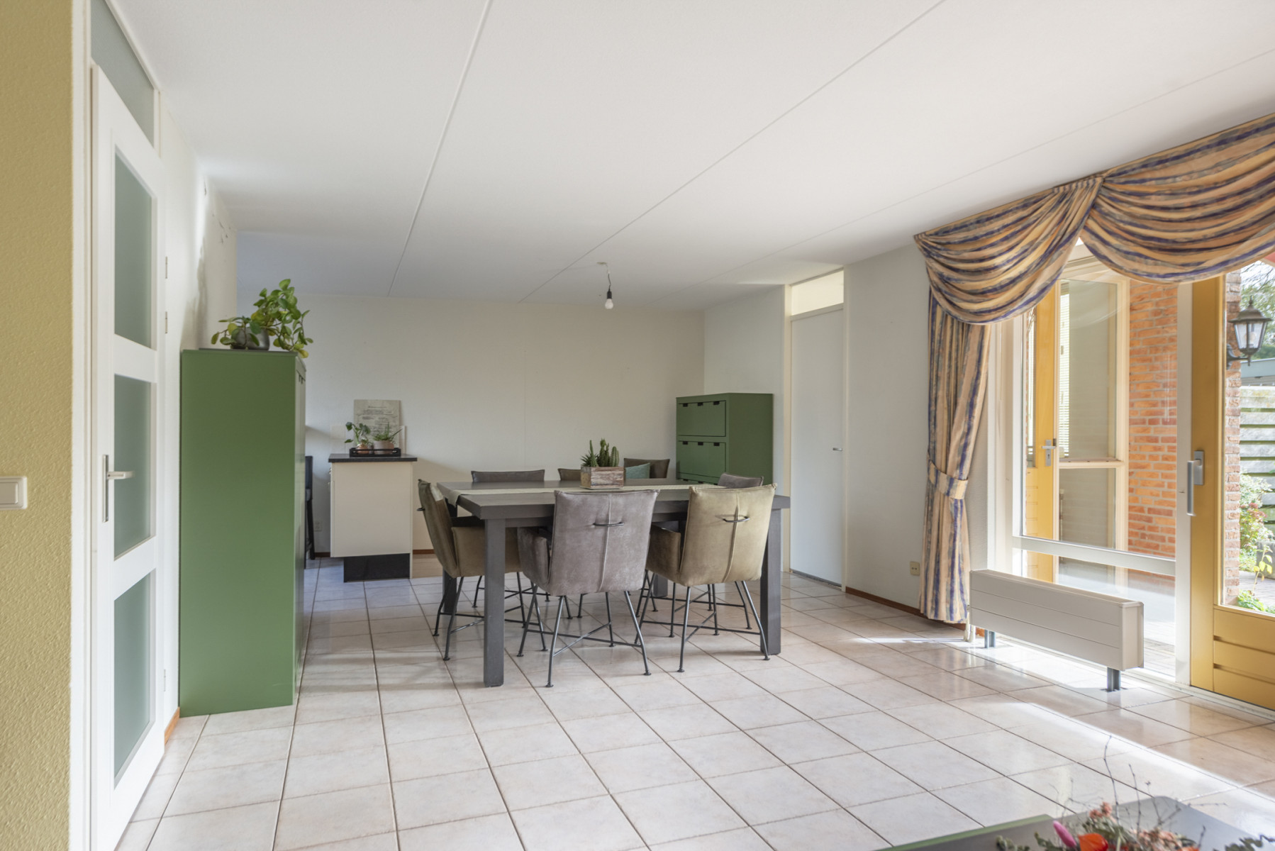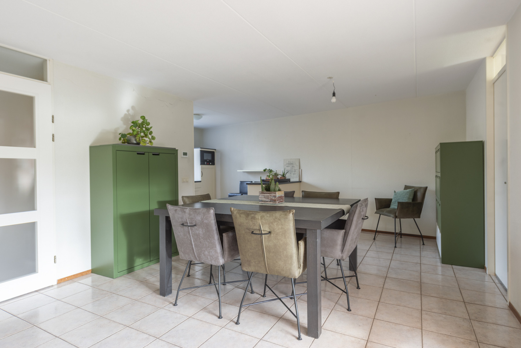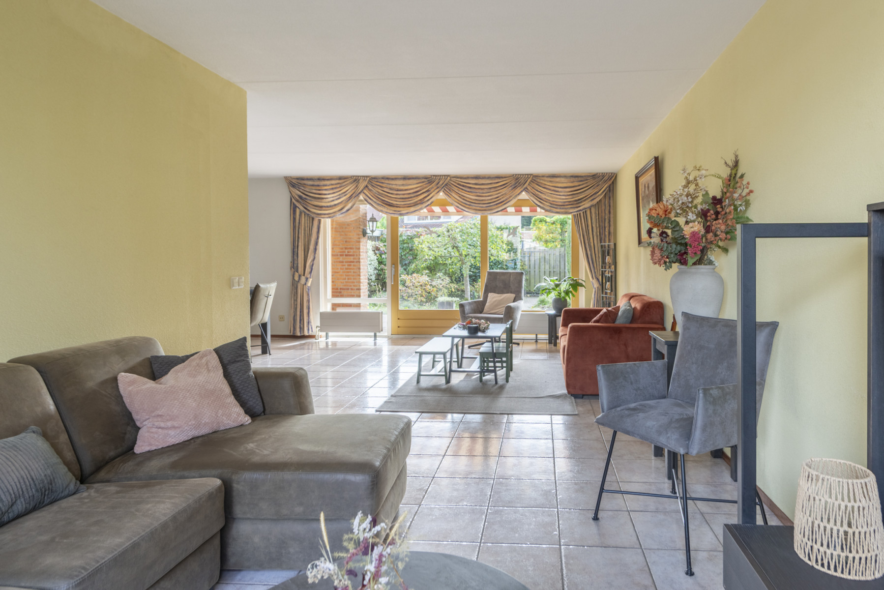 De woonkamer is een echte doorzonkamer. Dit komt door het grote raampartij aan de voorzijde en de schuifpui aan de achterzijde. Erg aangenaam zoveel lichtinval. De ruimte biedt u voldoende plek voor het plaatsen van een zitgedeelte.