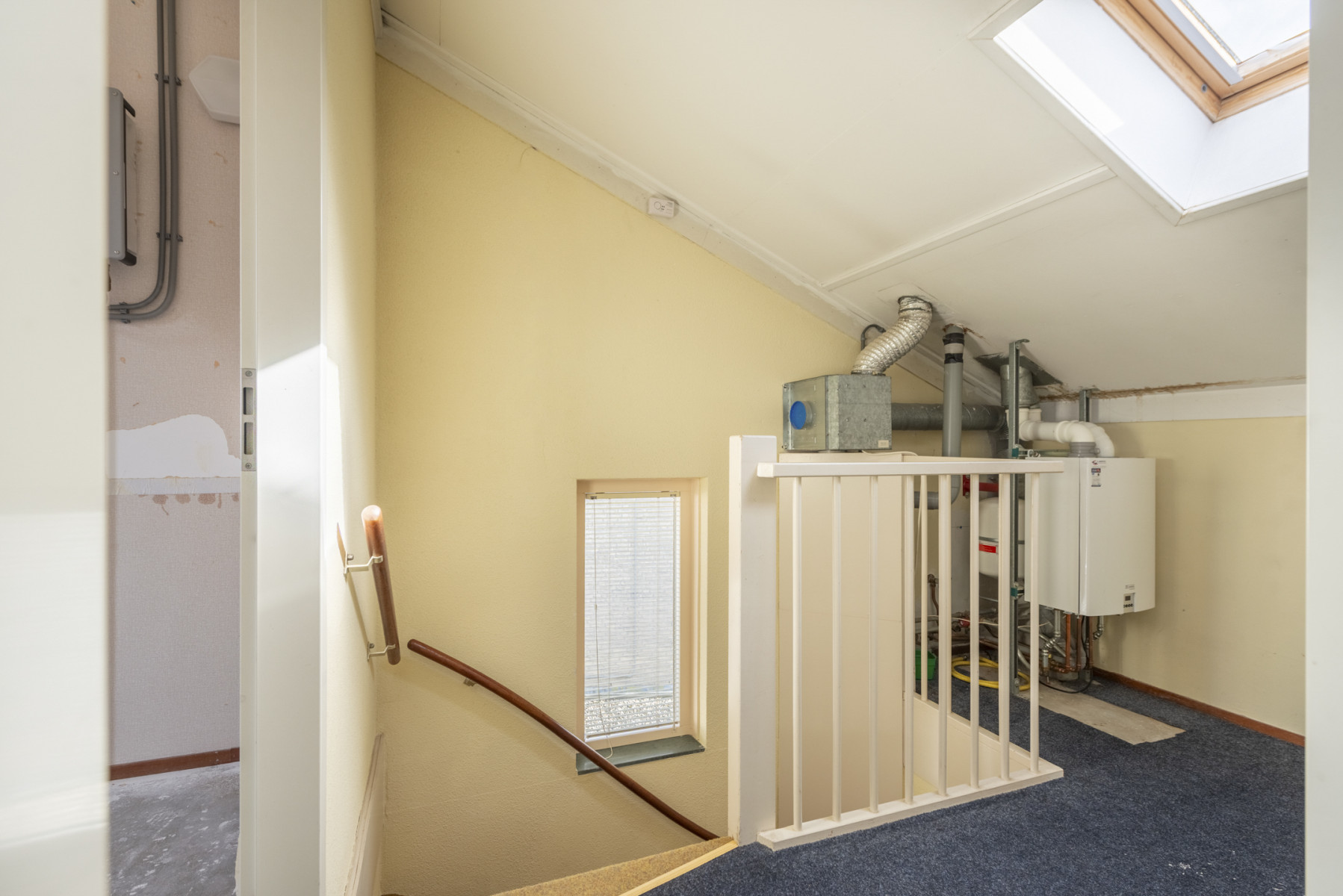 Via een vaste trap bereiken we de tweede verdieping. Wat een ruime verdieping. De overloop met opstelling van de cv-ketel, bergruimte achter knieschot en een Velux dakraam brengt u bij drie slaapkamers. Eén slaapkamer treft u aan de achterzijde die voorzien is van een Velux dakraam. De andere twee bevinden zich aan de voorzijde.