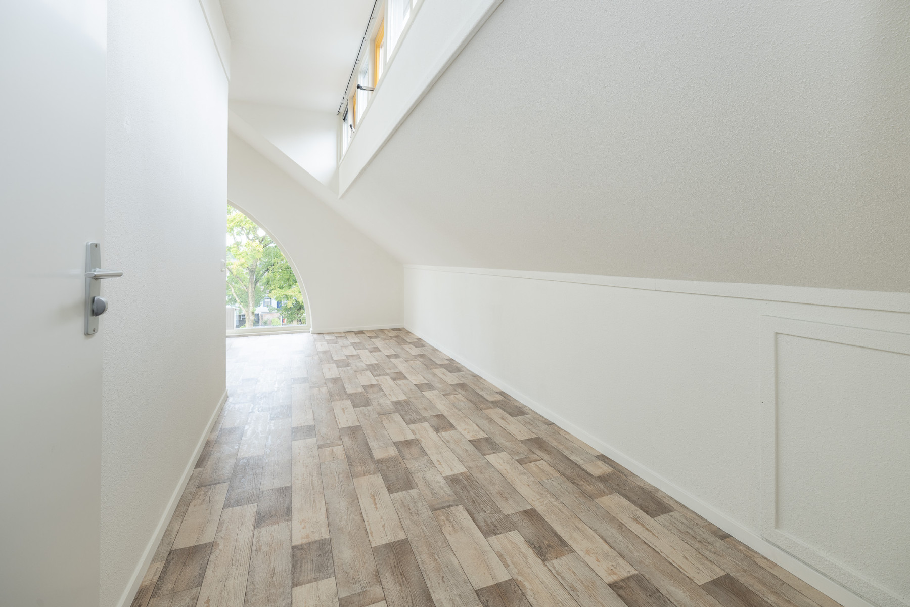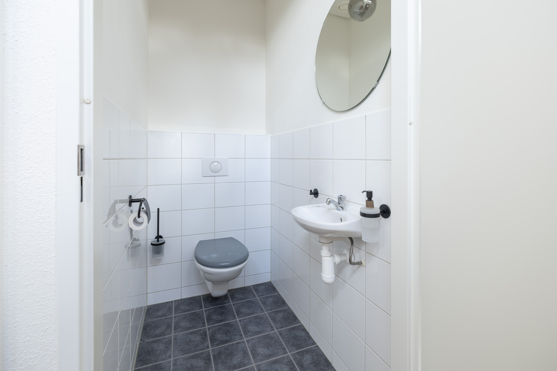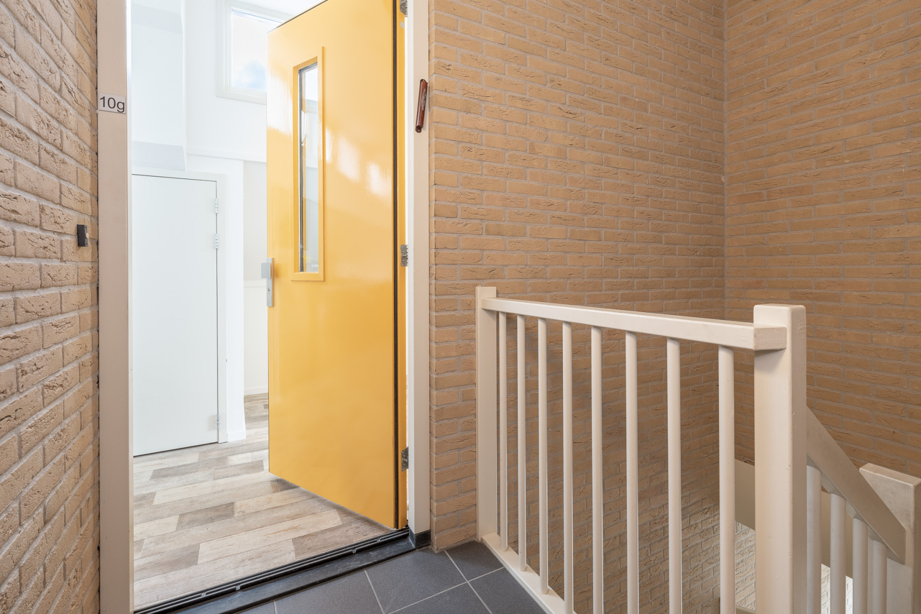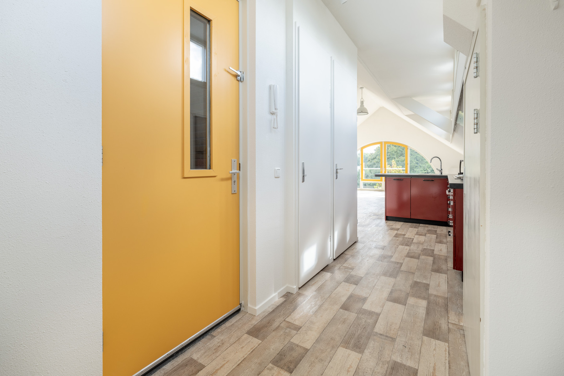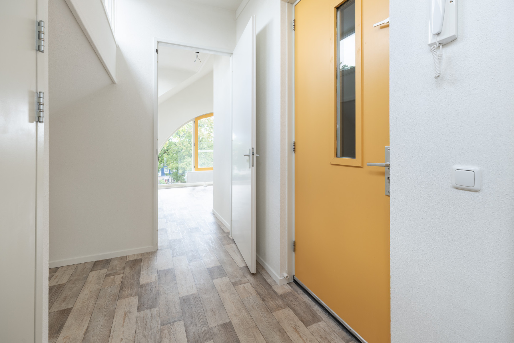 Welkom in dit fijne appartement, waar het vele licht u direct bij binnenkomst tegemoetkomt. Naast de voordeur vindt u direct links de intercom en de meterkast. Ook bevindt zich hier het toilet met fonteintje.