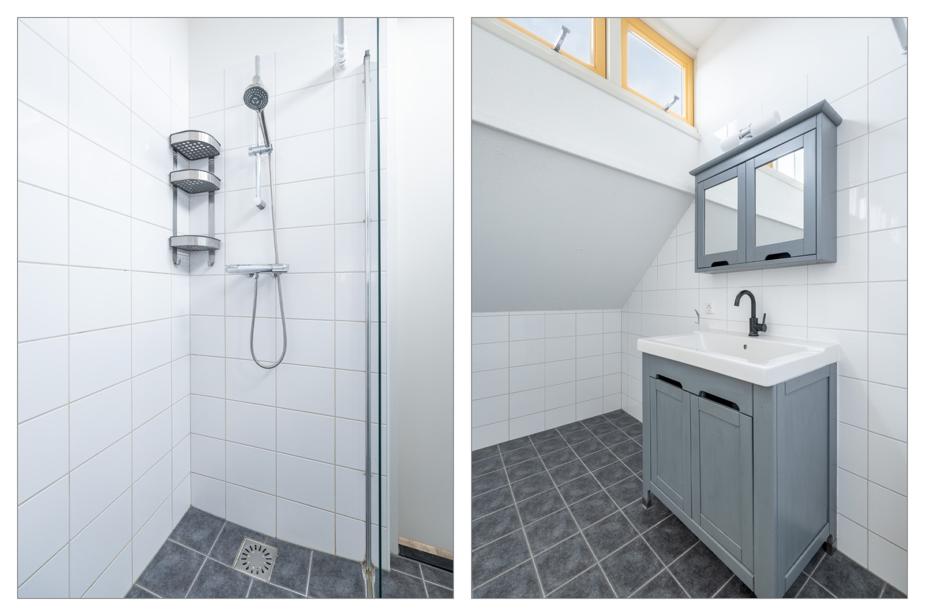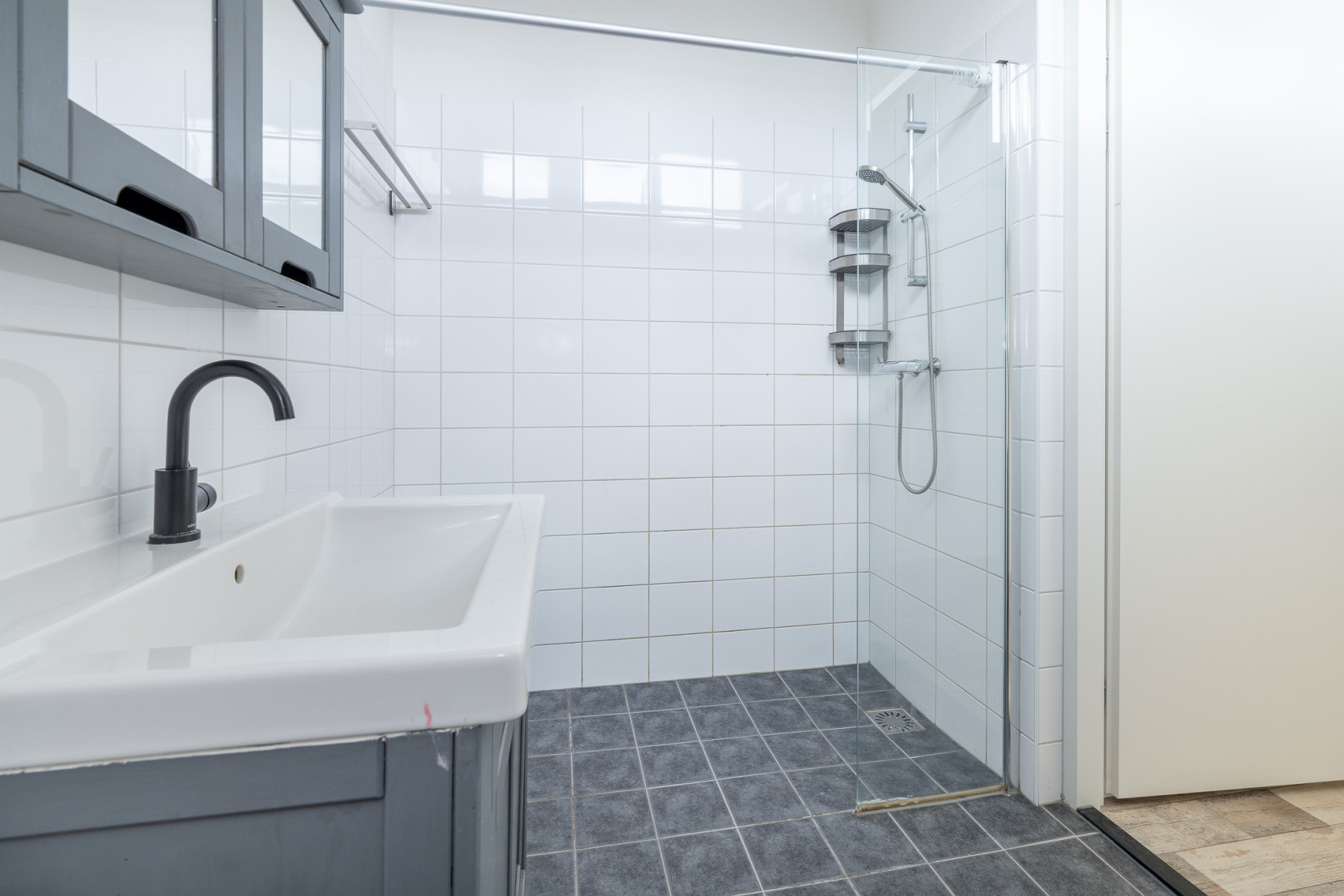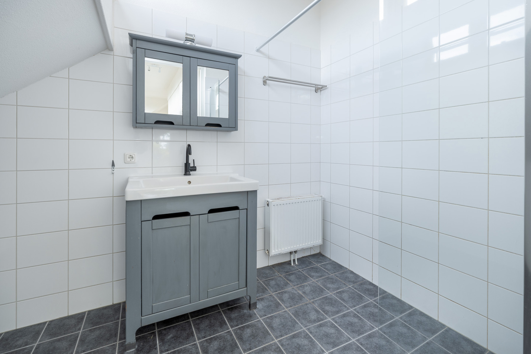 Wastafelmeubel, inloopdouche en wasmachineaansluiting