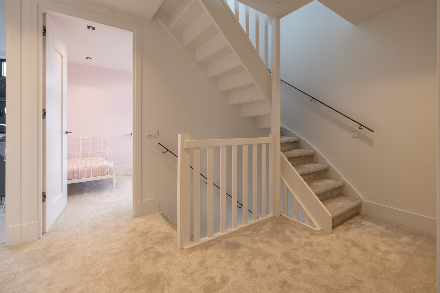 Een verdieping die keurig is afgewerkt met op elke kamer vloerbedekking, gestuukte wanden en een gestuukt plafond. Hier hoeft u alleen maar uw eigen spullen te plaatsen. De royale overloop brengt u bij drie slaapkamers. De ouderslaapkamer, gelegen aan de voorzijde, heeft een uitstekende maatvoering. Achter de wand vindt u een inloopkast aan beide zijde van de ruimte. Beide kasten zijn ingedeeld met hangruimte en lades. Zo heeft u alles overzichtelijk en blijft de kamer netjes en opgeruimd. De andere twee slaapkamers treft u aan de achterzijde. Beide hebben een royale maat en zijn voorzien van een inbouwkast. De kasten zijn afgewerkt met gouden details, die overal in de woning terug komen.