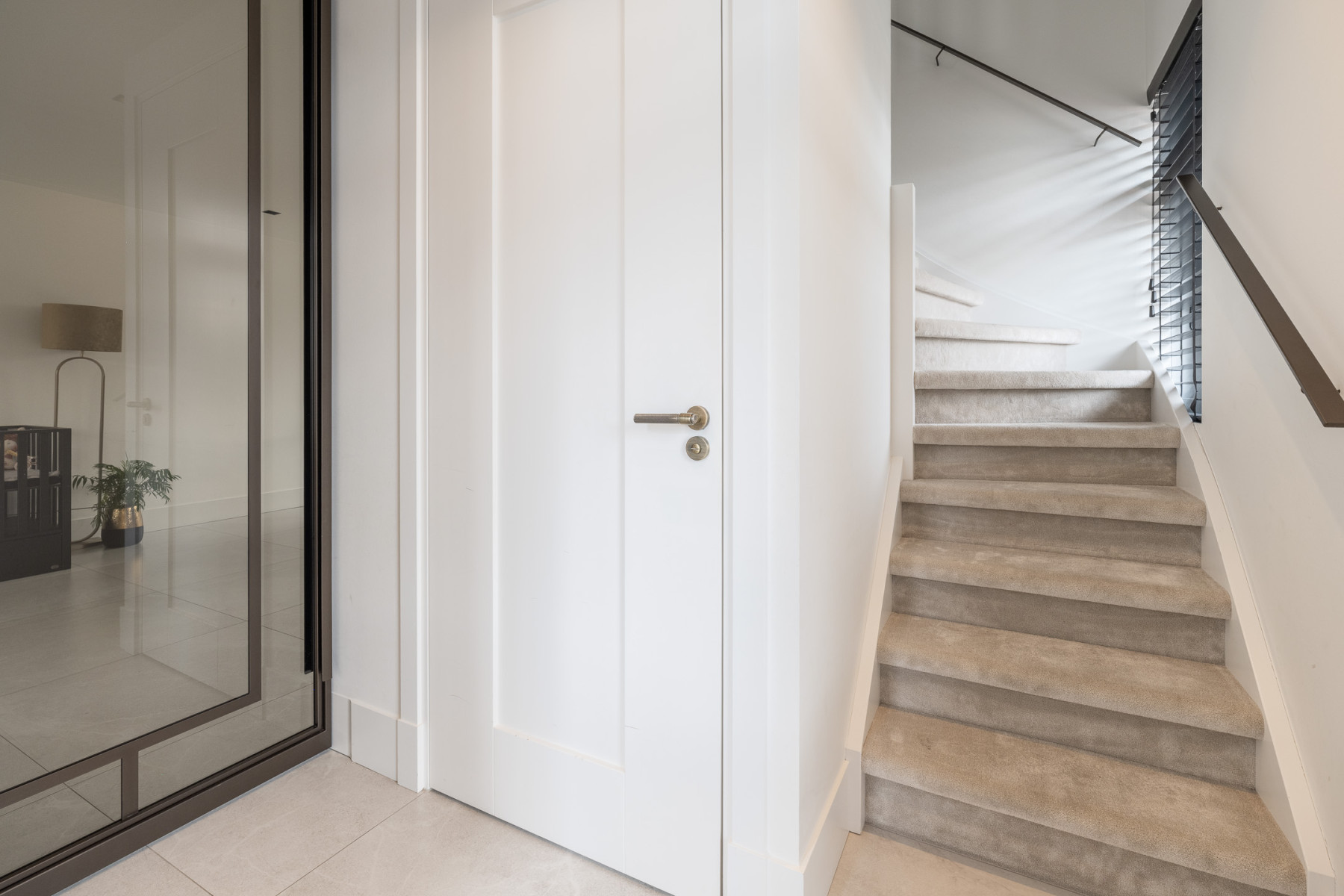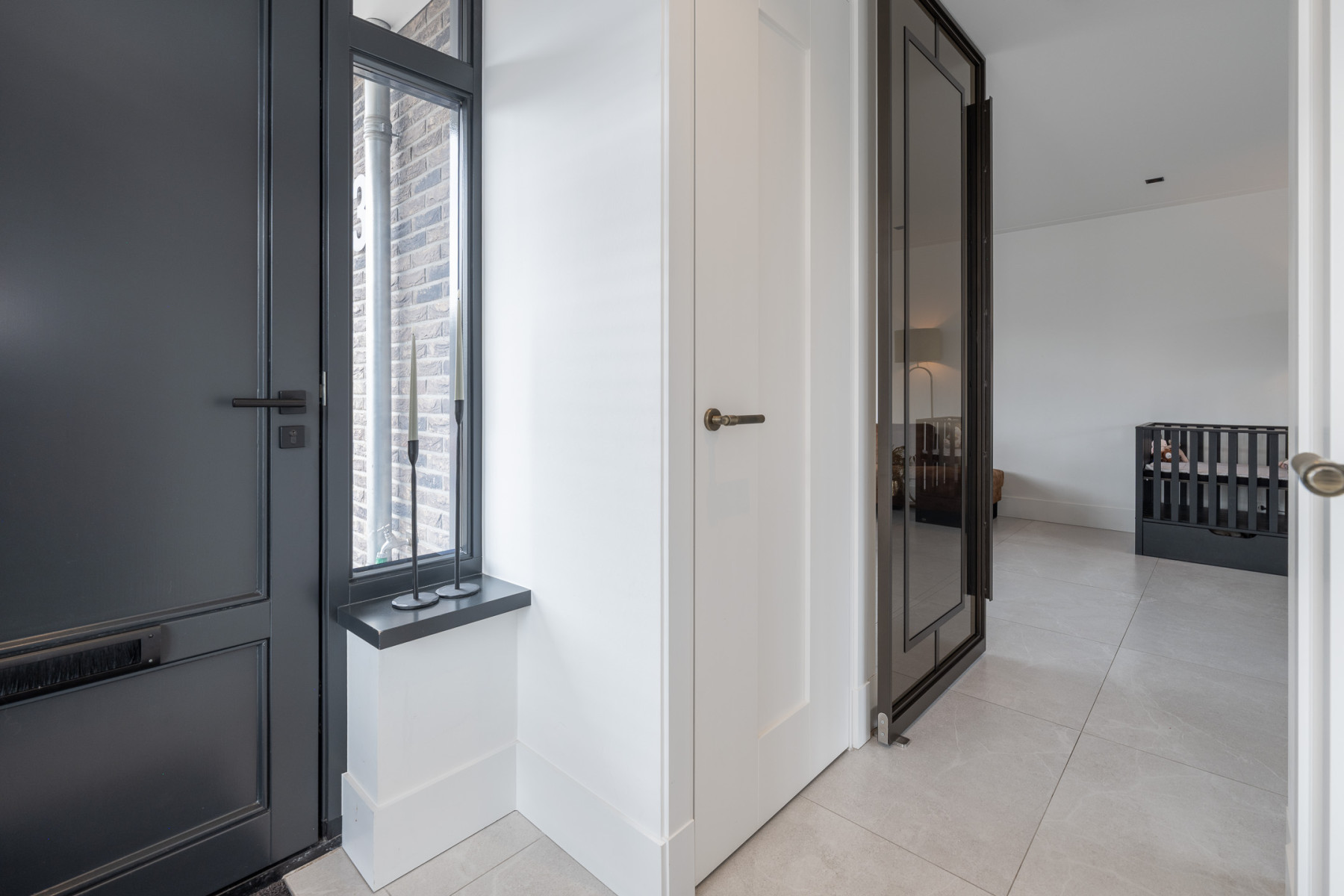 Hier stapt u binnen in een hal die meteen duidelijk maakt wat u kunt verwachten van de rest van de woning: strak afgewerkt, licht en meer dan compleet! De hal is afgewerkt met een combinatie van wit stucwerk, grote vloertegels en donkere accenten.