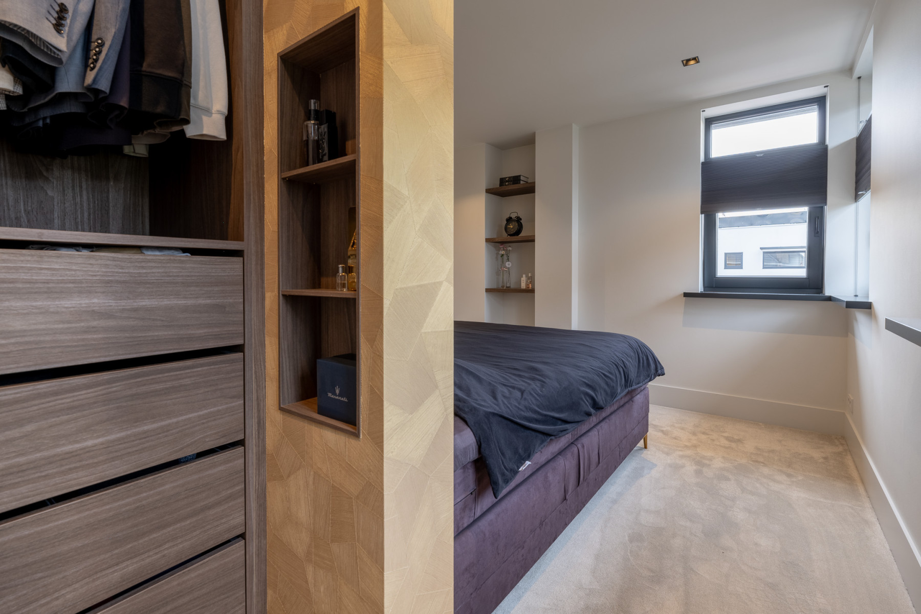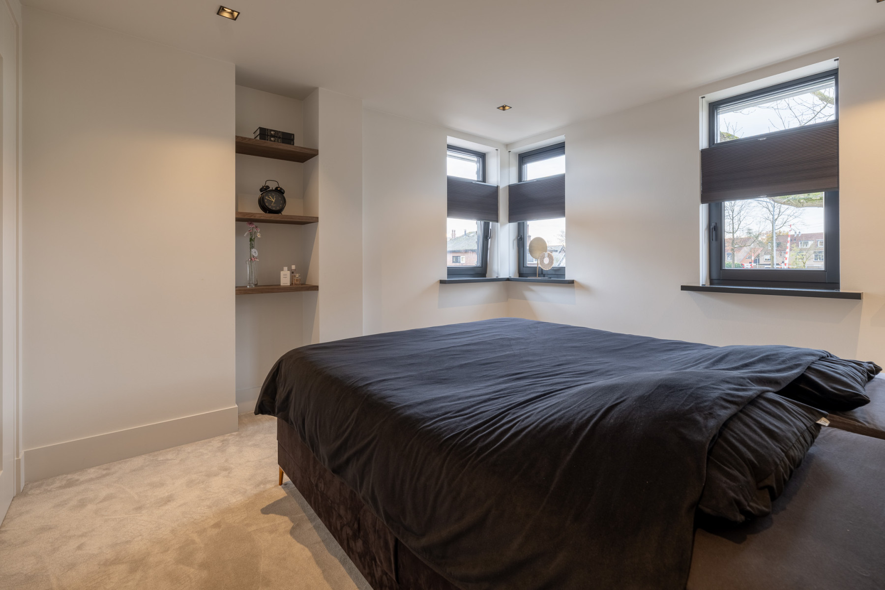 We blijven het zeggen, ook deze tweede verdieping is tot in de puntjes toe afgewerkt. De verdieping is verrassend ruim en is ingedeeld met twee slaapkamers. Eén slaapkamer is zeer ruim en voorzien van bergruimte achter knieschot, twee Fakro dakramen met zonwering en een vaste inbouwkast die perfect bij de afwerking van de rest van de woning past. Een eyecatcher zijn de stalen balken die zichtbaar zijn in de ruimte.