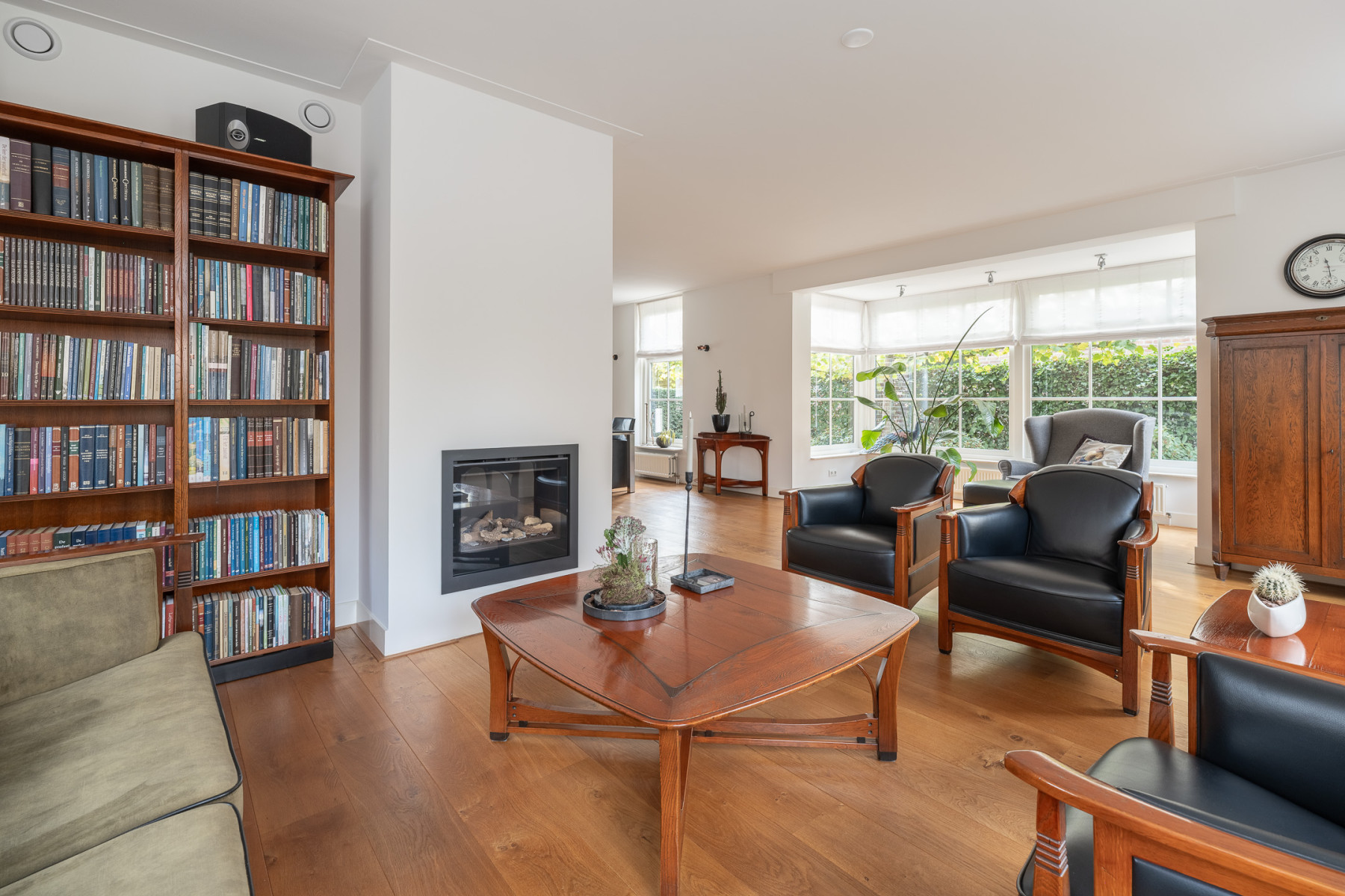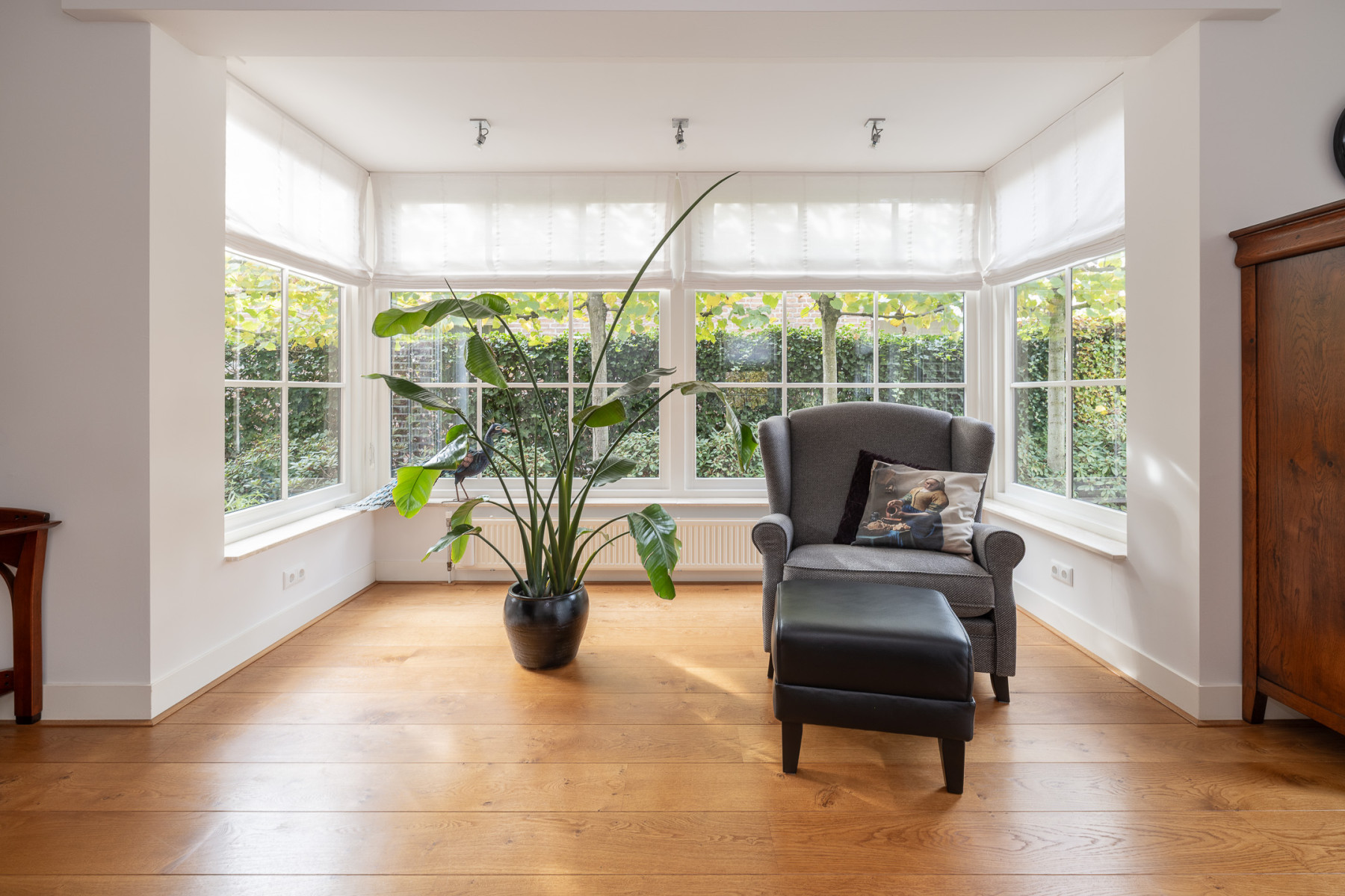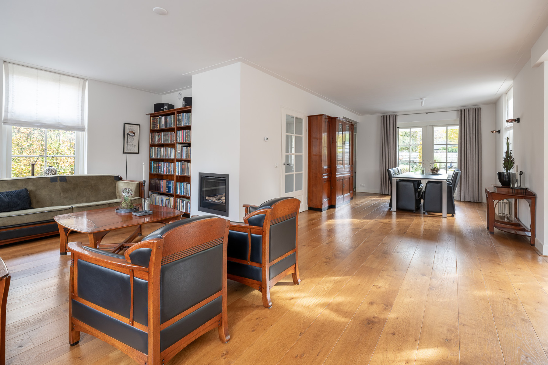 De woonkamer heeft een perfecte basis waardoor u hier al snel uw eigen (t)huis van kunt maken. De strakke wanden zijn voorzien van een lichte kleur, het plafond is gestuukt en op de vloer ligt een prachtige Franse eiken parketvloer. Het is een stijlvol geheel. Verder is de ruimte afgewerkt met travertin vensterbanken. De vele raampartijen zorgen voor veel natuurlijk daglicht in de ruimte. Daarbij is de woonkamer voorzien van een grote erker, dit creëert extra ruimte en geeft ook veel licht in de kamer. Een sfeervol detail is de Bellfire gashaard, deze zorgt voor fijne warmte op minder mooie dagen én voor extra sfeer.