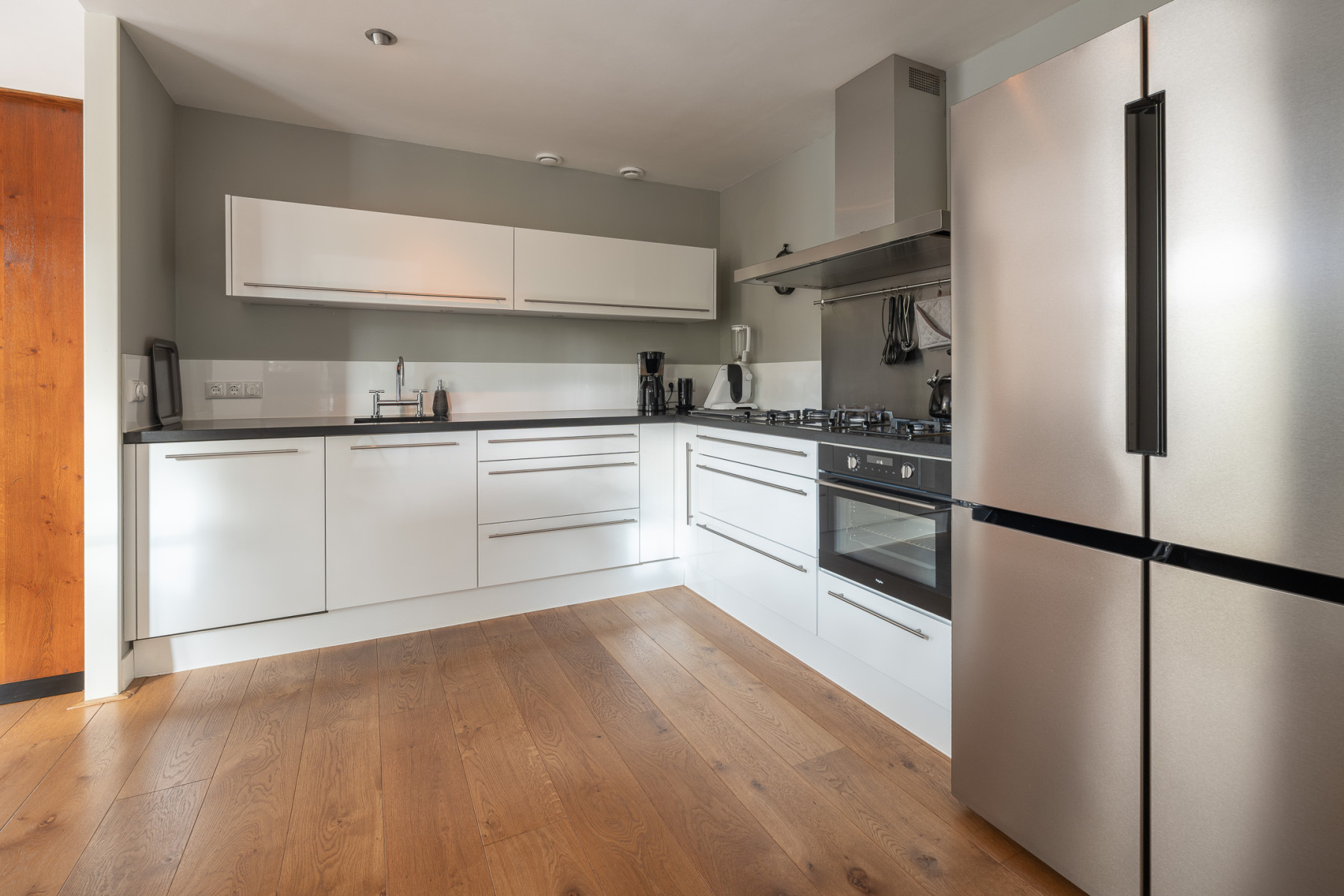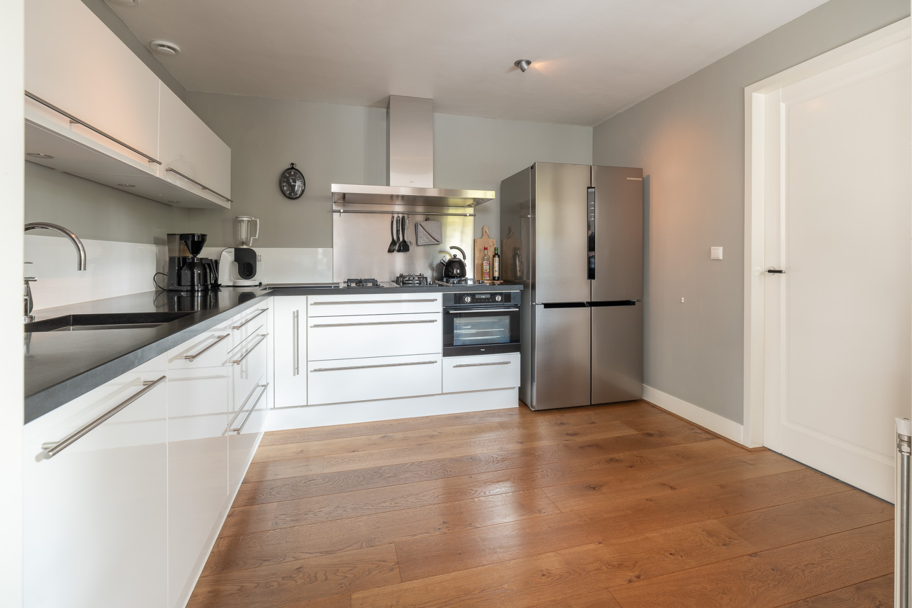 De keuken is ruim opgezet en helemaal gericht op gemak in het dagelijkse gebruiken. De keuken is een keuken met kwaliteitsapparatuur. De witte kasten in combinatie met het donkere aanrechtblad zorgt voor een modern geheel. U beschikt hier over een 5-pits gas op gasfornuis, een Novy afzuigkap, een Siemens vaatwasmachine, een combi stoom-oven en een grote Bosch koel-/vriescombinatie. Vanuit de keuken bereikt u de praktische bijkeuken. Een complete, doordachte keuken waar u elke dag weer opnieuw met veel plezier zult koken!