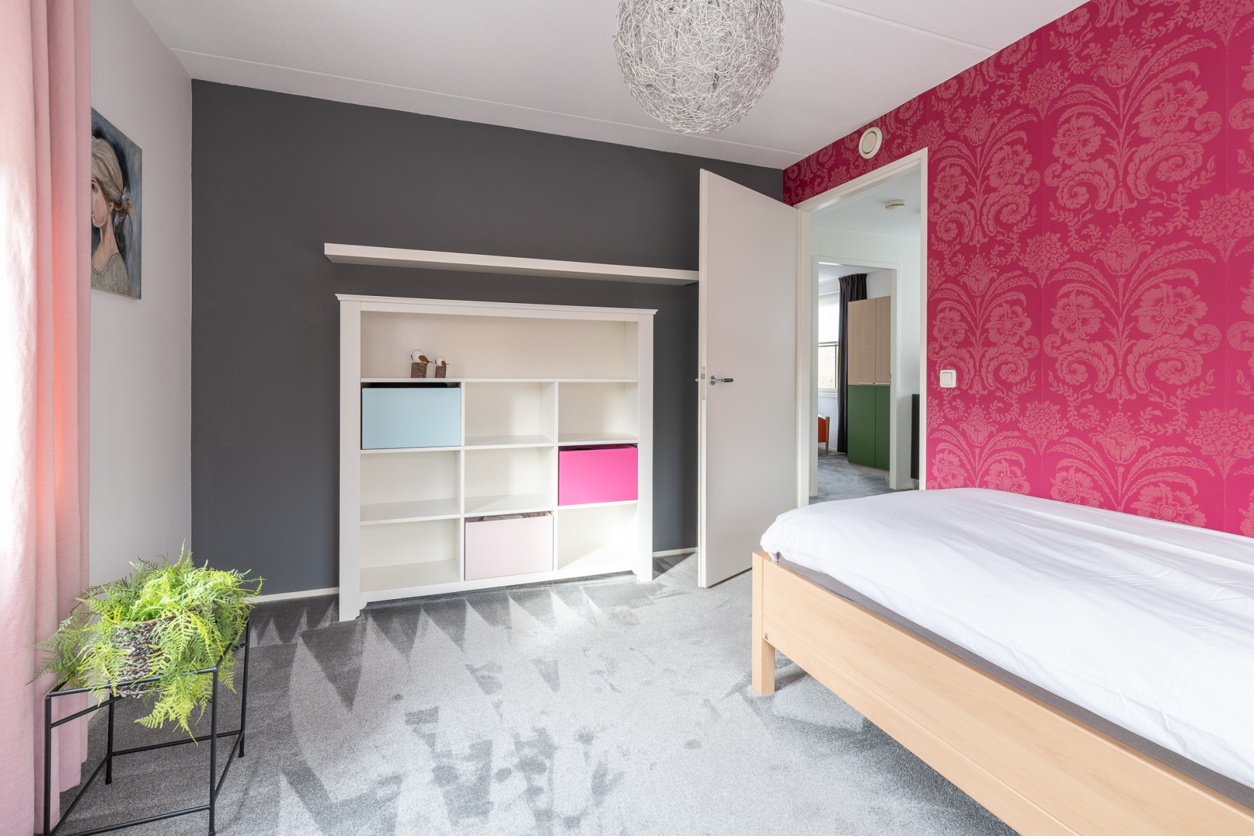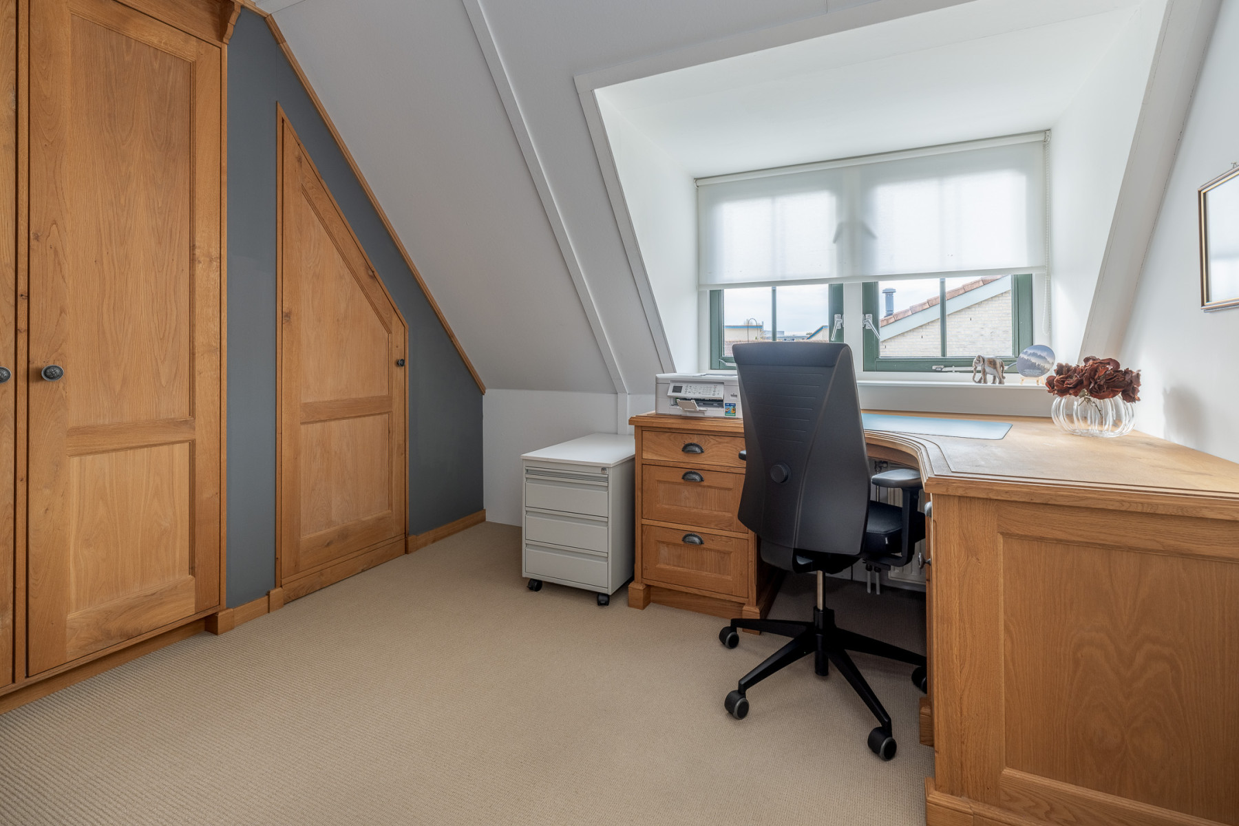 Via de vaste trap bereiken we de tweede verdieping. Op deze verdieping treffen we nog twee slaapkamers aan. Beide kamers hebben een royaal formaat en zijn voorzien van een dakkapel. Op één kamer beschikt u tevens over een vaste kasten met inloop mogelijkheid die u veel ruimte bieden voor het opbergen van uw spullen. Daarnaast vindt u op deze slaapkamer ook een eikenhout bureau. Een fijne ruimte om bijvoorbeeld als kantoor te gebruiken. Verder krijgt u vanaf de overloop ook toegang tot de technische ruimte. Hier vindt u de opstelling van de cv-ketel en de WTW-installatie.